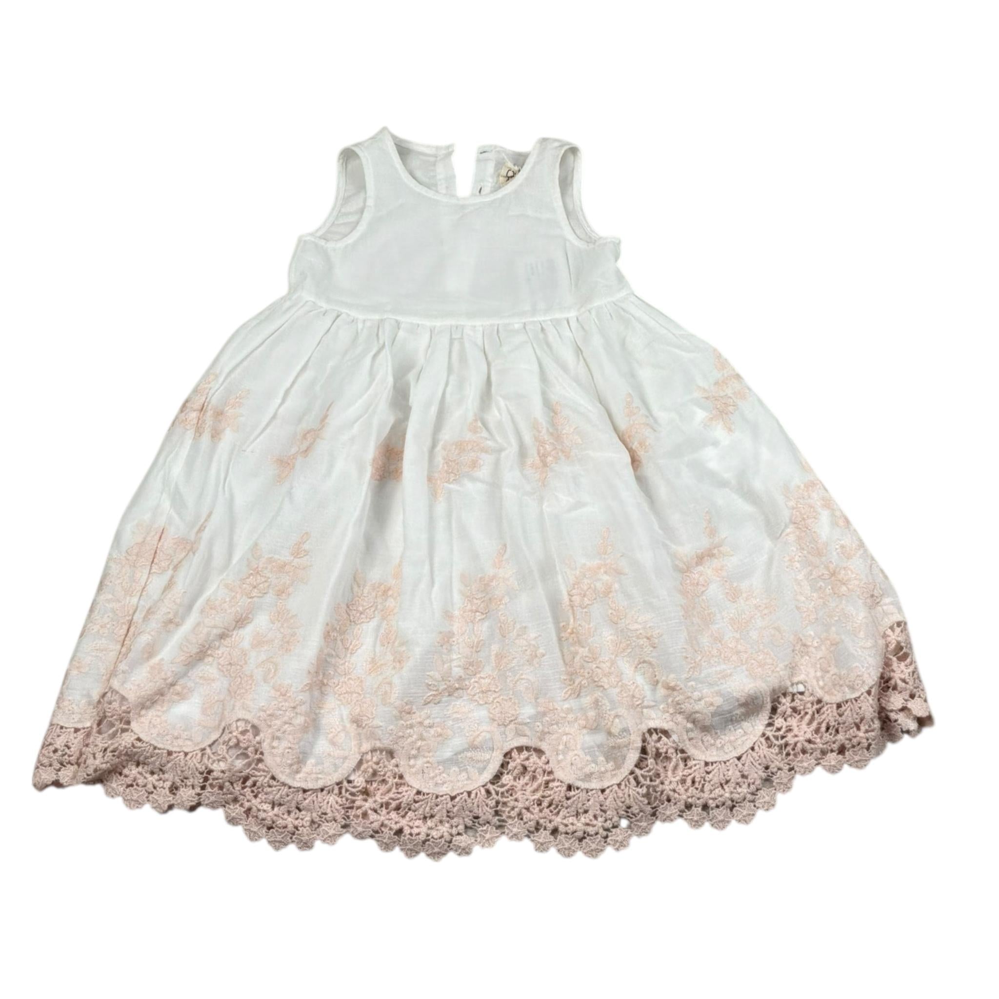 Caffe' D'Orzo Abito Giromanica Tinta Unita con Ricami per Neonata