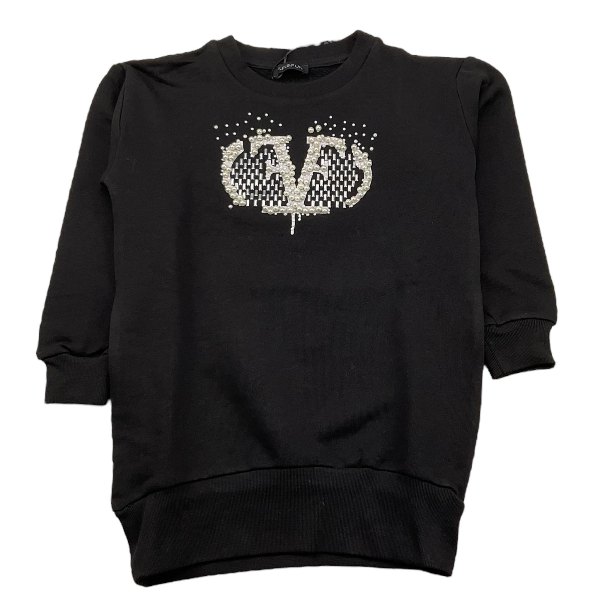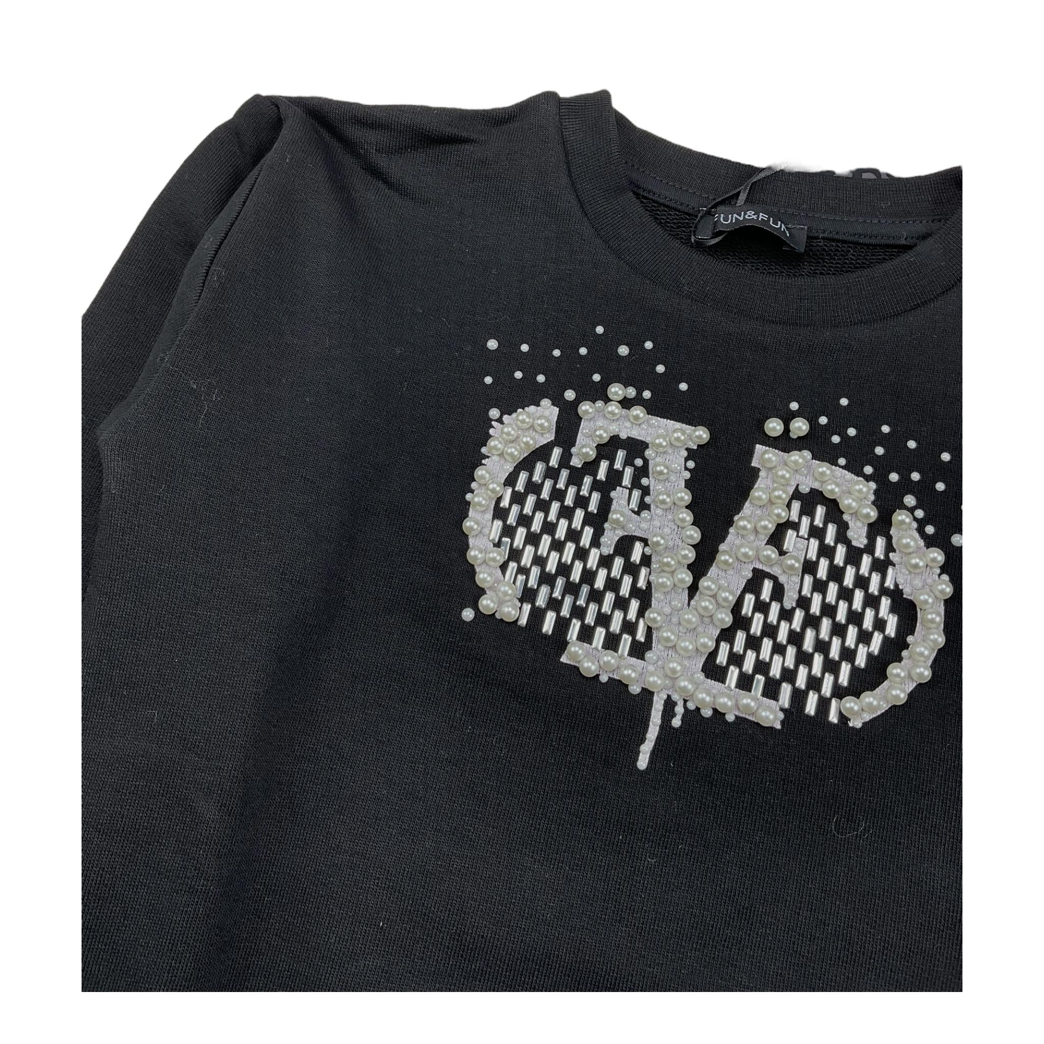FUN & FUN abito felpa girocollo tinta unita con applicazioni Nero per Bambina