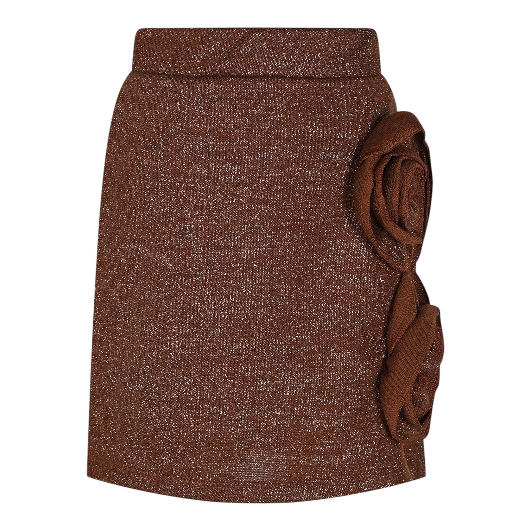 FUN & FUN gonna tinta unita lurex con rose Marrone per Bambina