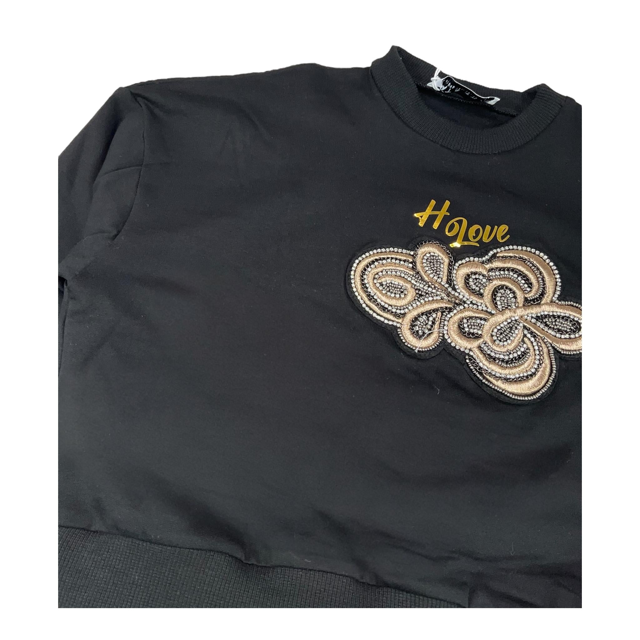 HATE LOVE completo 2 pezzi felpa-pantalone tuta palazzo Nero per Bambina
