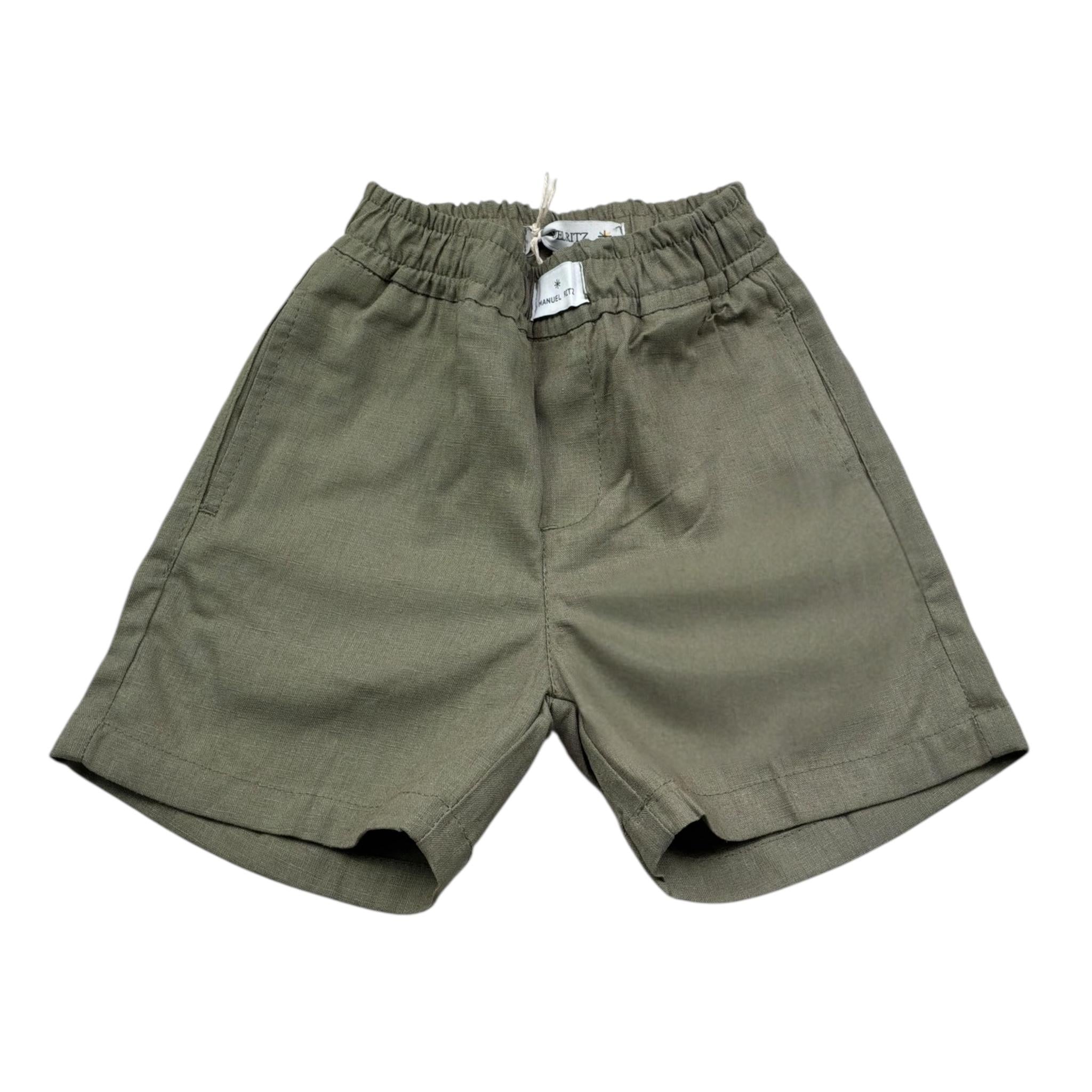 Manuel Ritz Bermuda Tinta Unita Con Elastico In Vita Firmata Manuel Ritz. Realizzata in: 55% Lino 45% Viscosa . Articolo per Bambino