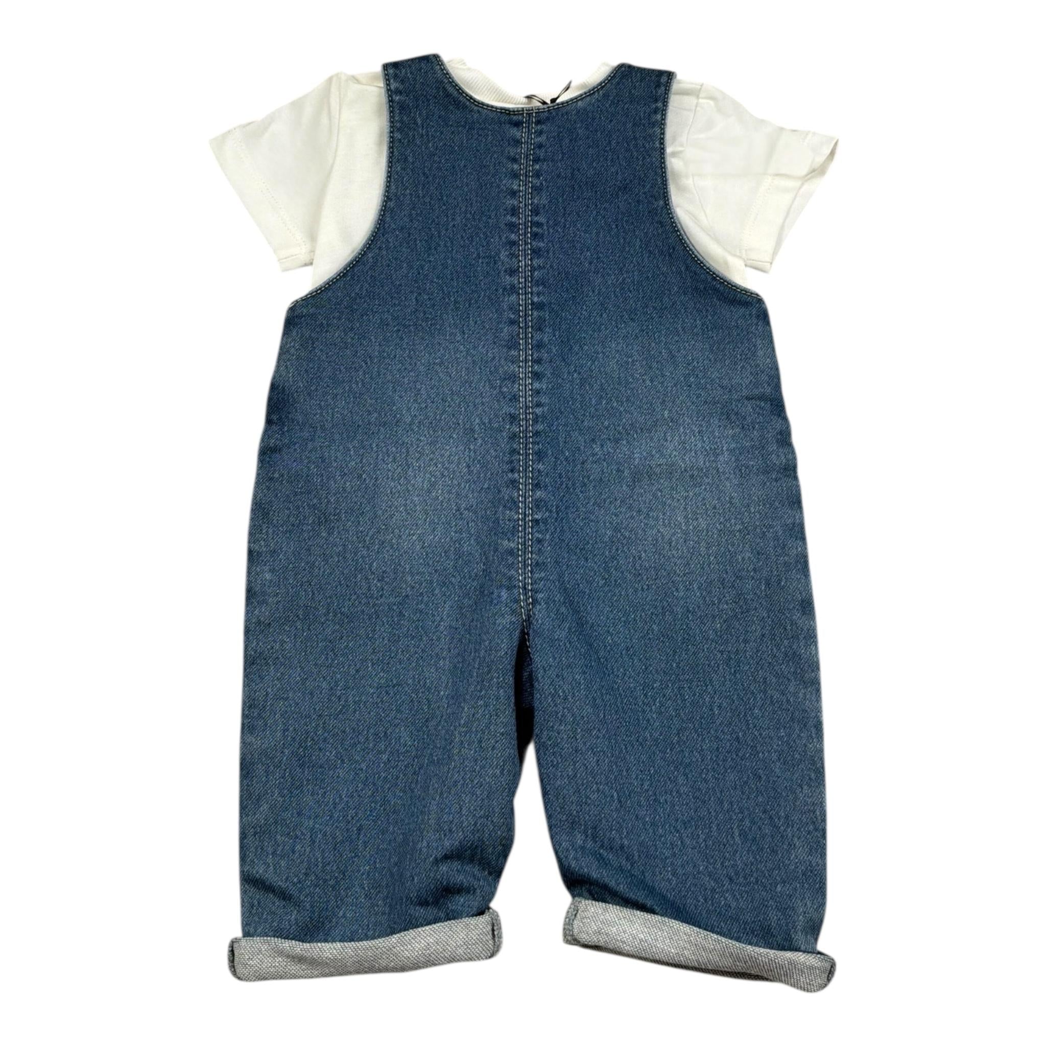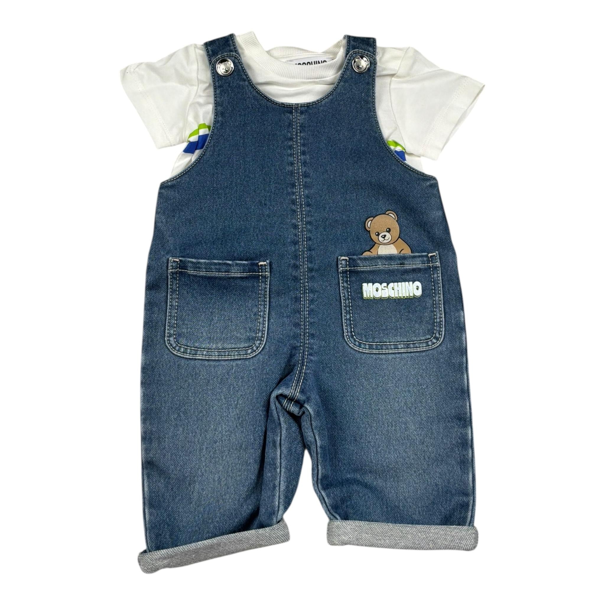 Moschino Completo 2 Pezzi T-Shirt-Salopette In Denim per Neonato