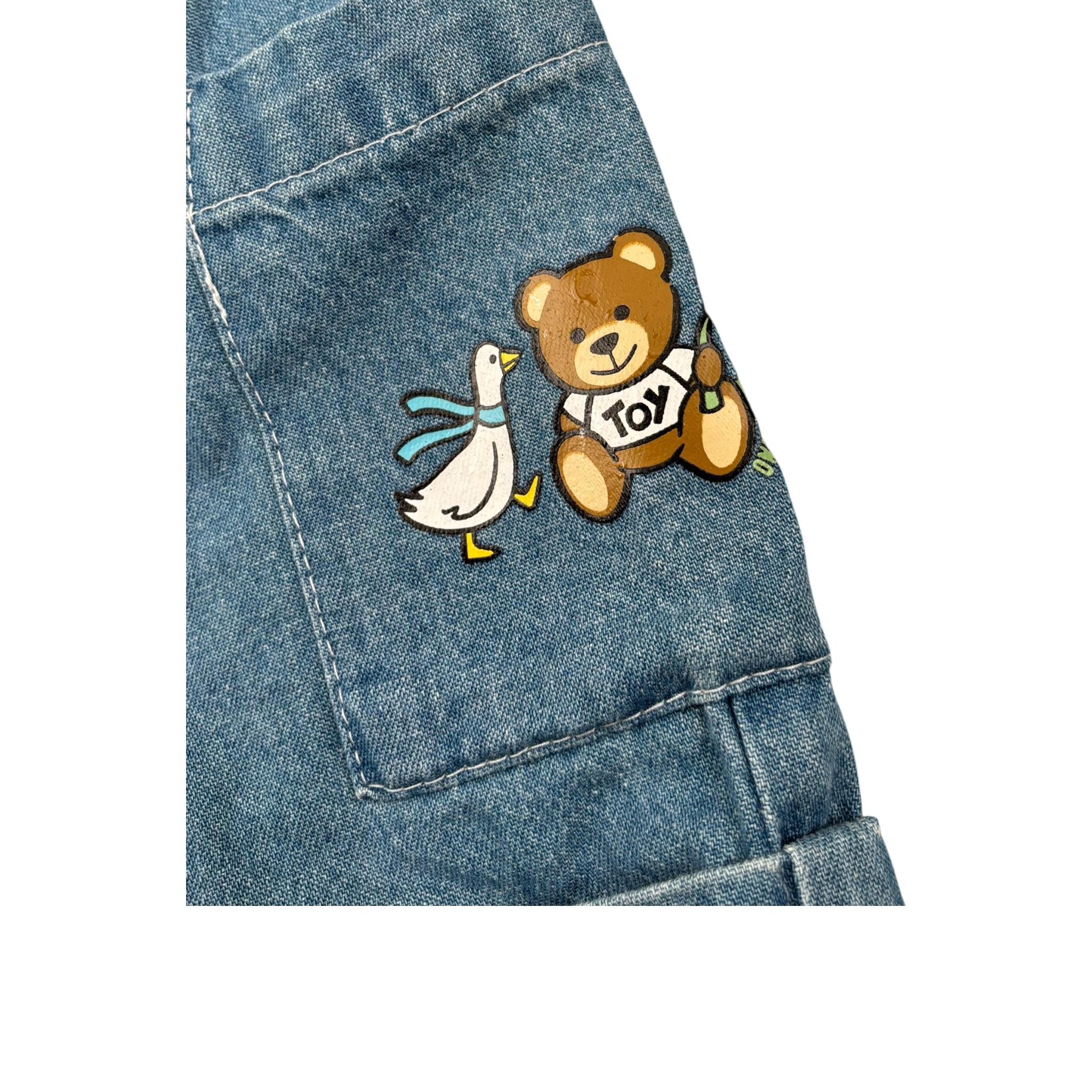 Moschino Short In Denim Tinta Unita con Stampa per Neonata