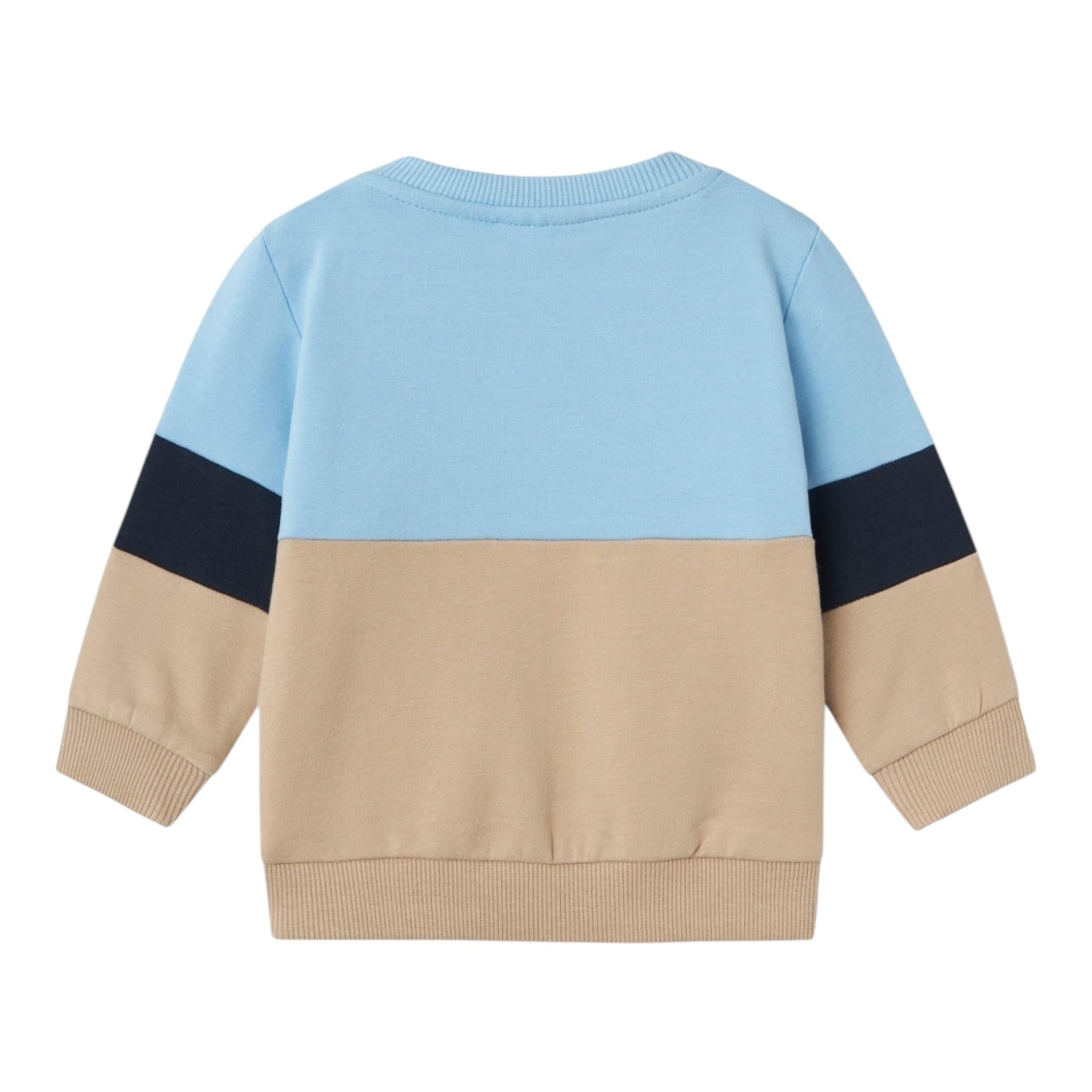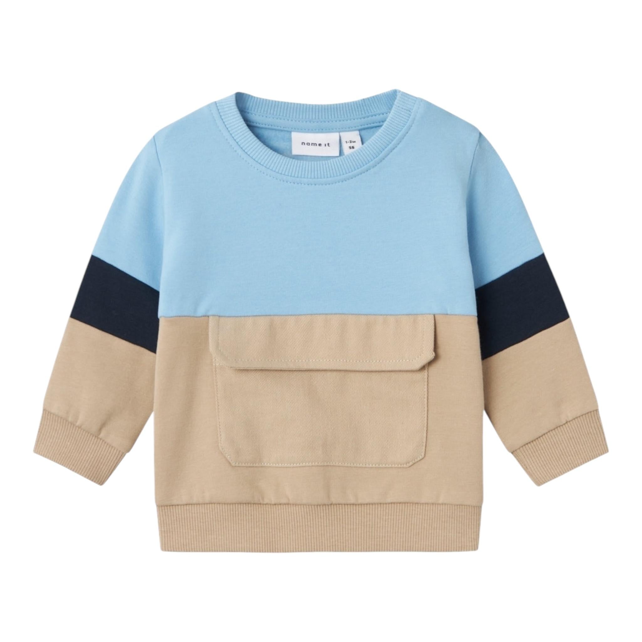 NAME.IT felpa chiusa bicolore girocollo con tasca Azzurro/beige per Neonato