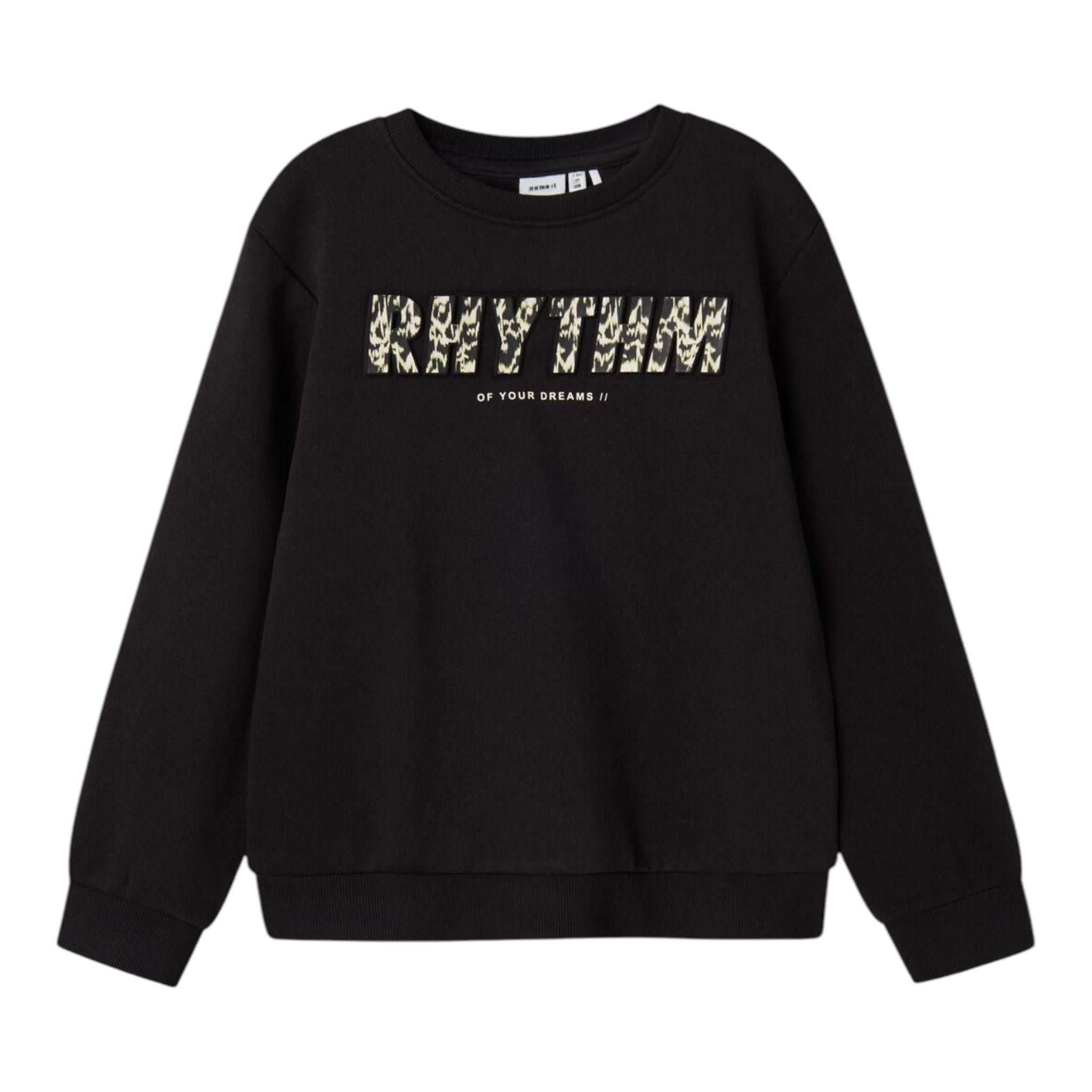 NAME.IT felpa chiusa girocollo tinta unita con stampa n Nero per Bambino 13233350 NERO NAME.IT