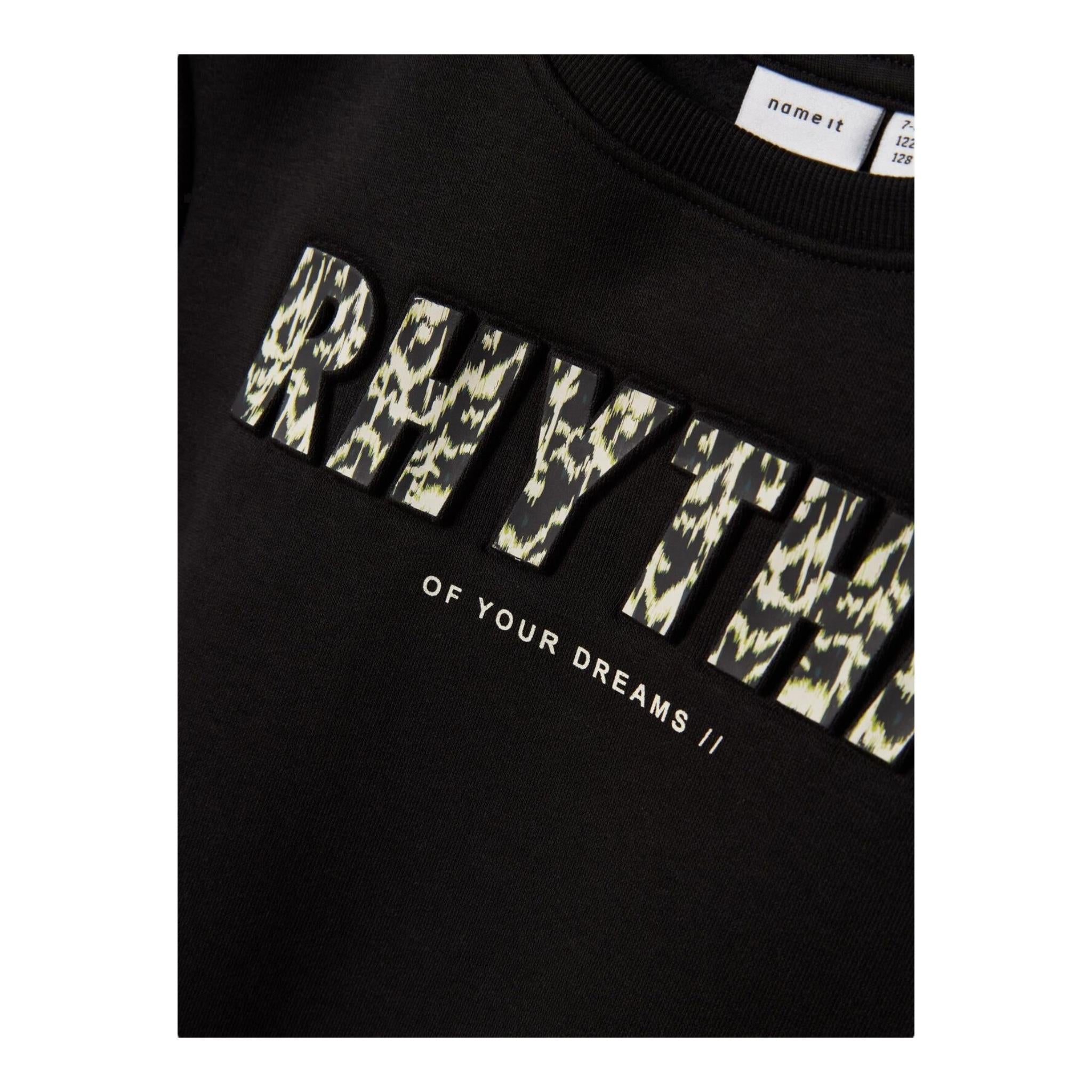 NAME.IT felpa chiusa girocollo tinta unita con stampa n Nero per Bambino