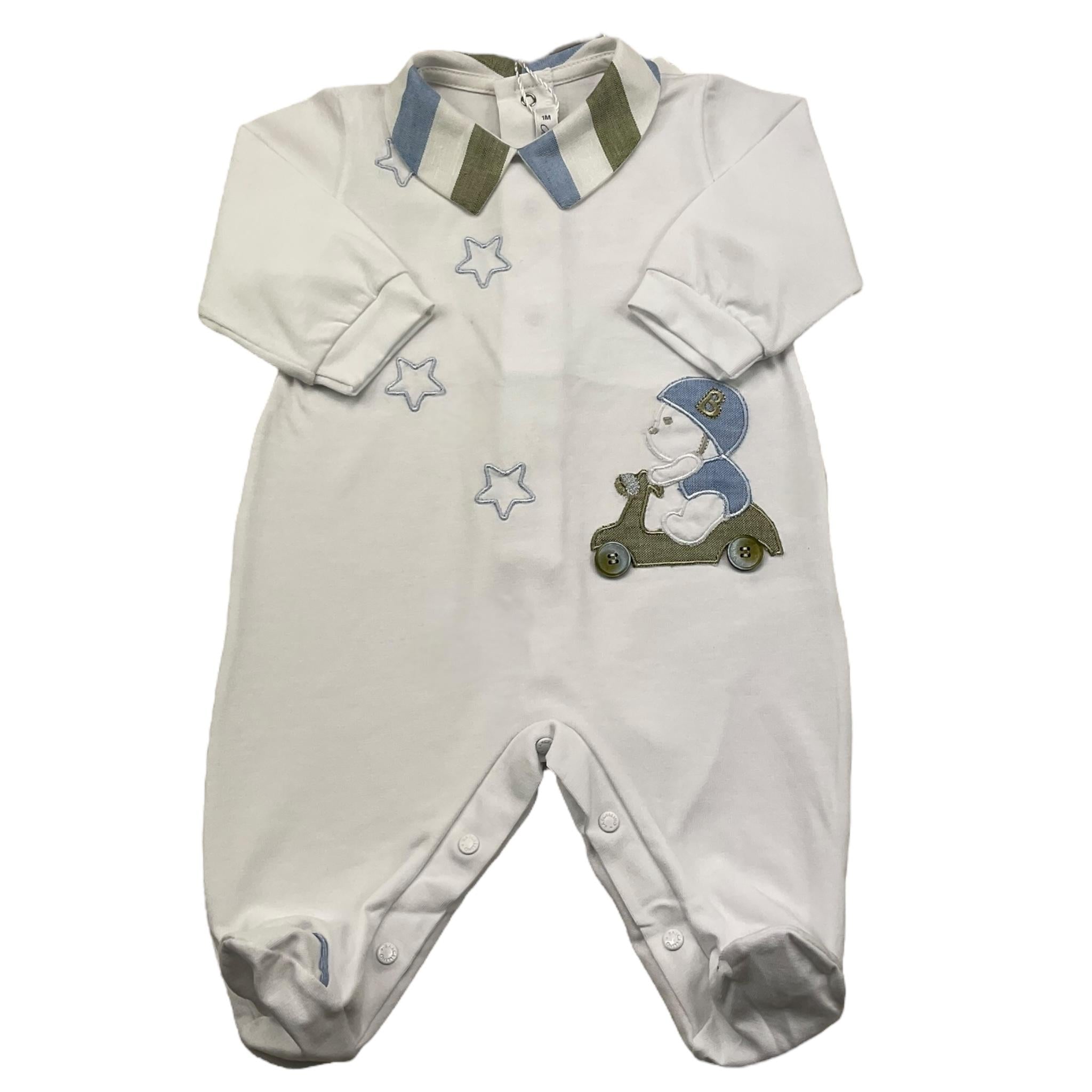 BARCELLINO tutina manica lunga tinta unita cn colletto in contrasto Bianco per Neonato