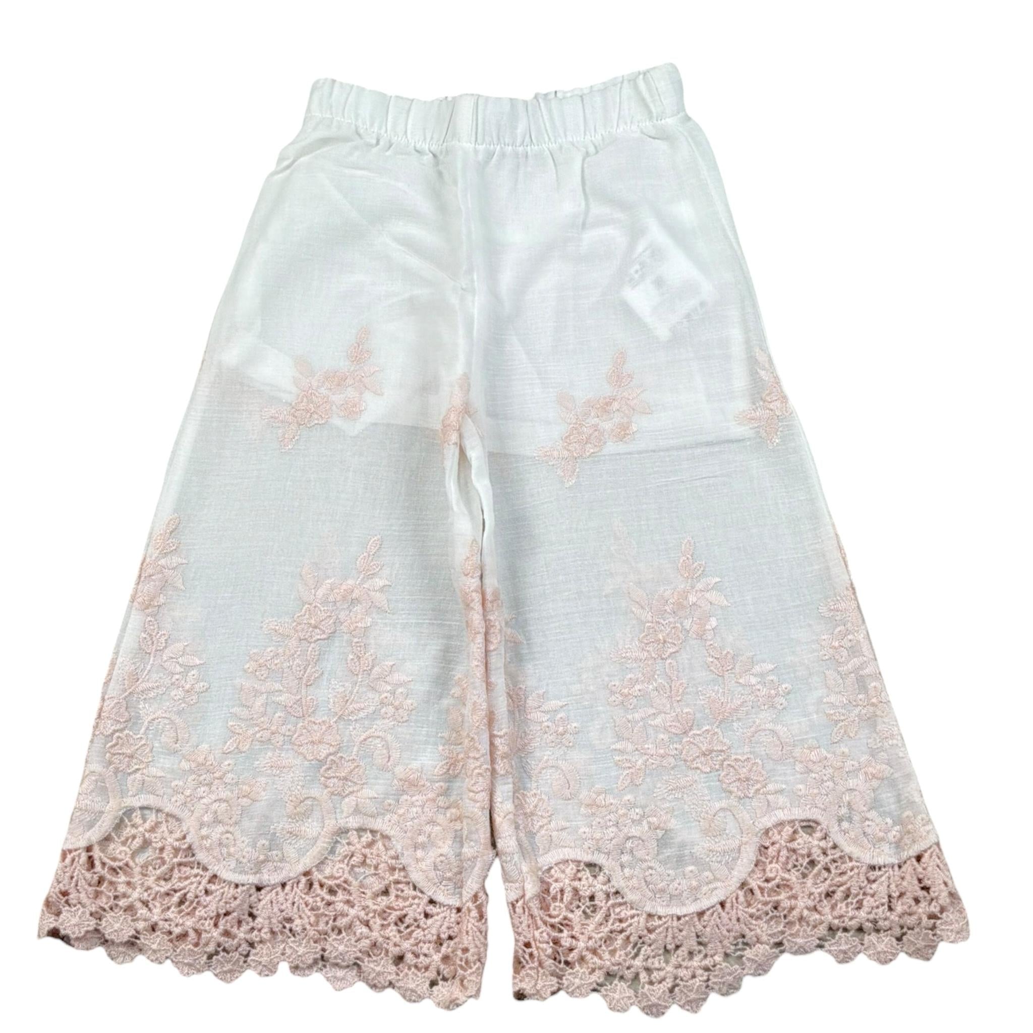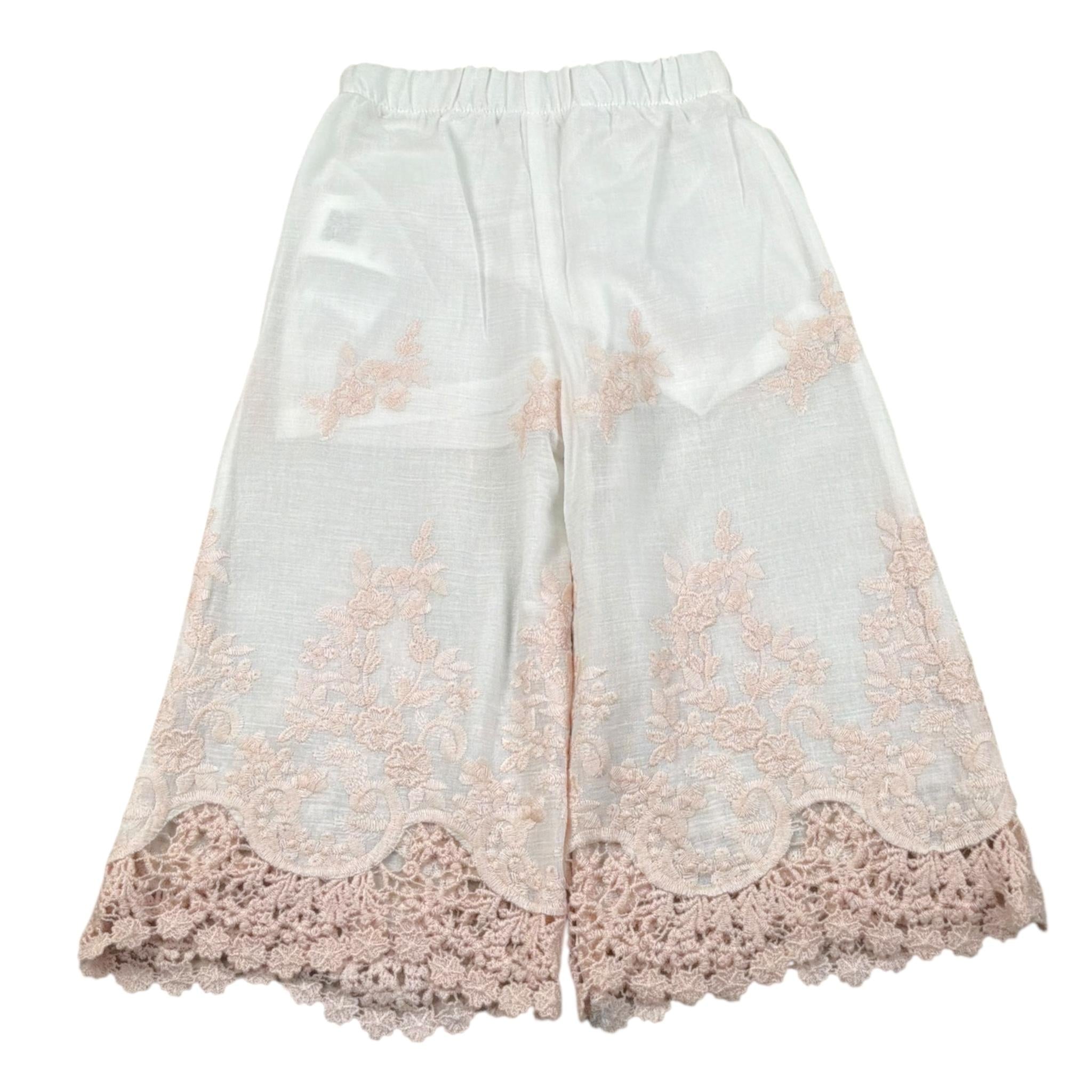 Caffe' D'Orzo Pantalone Tinta Unita con Ricami per Neonata