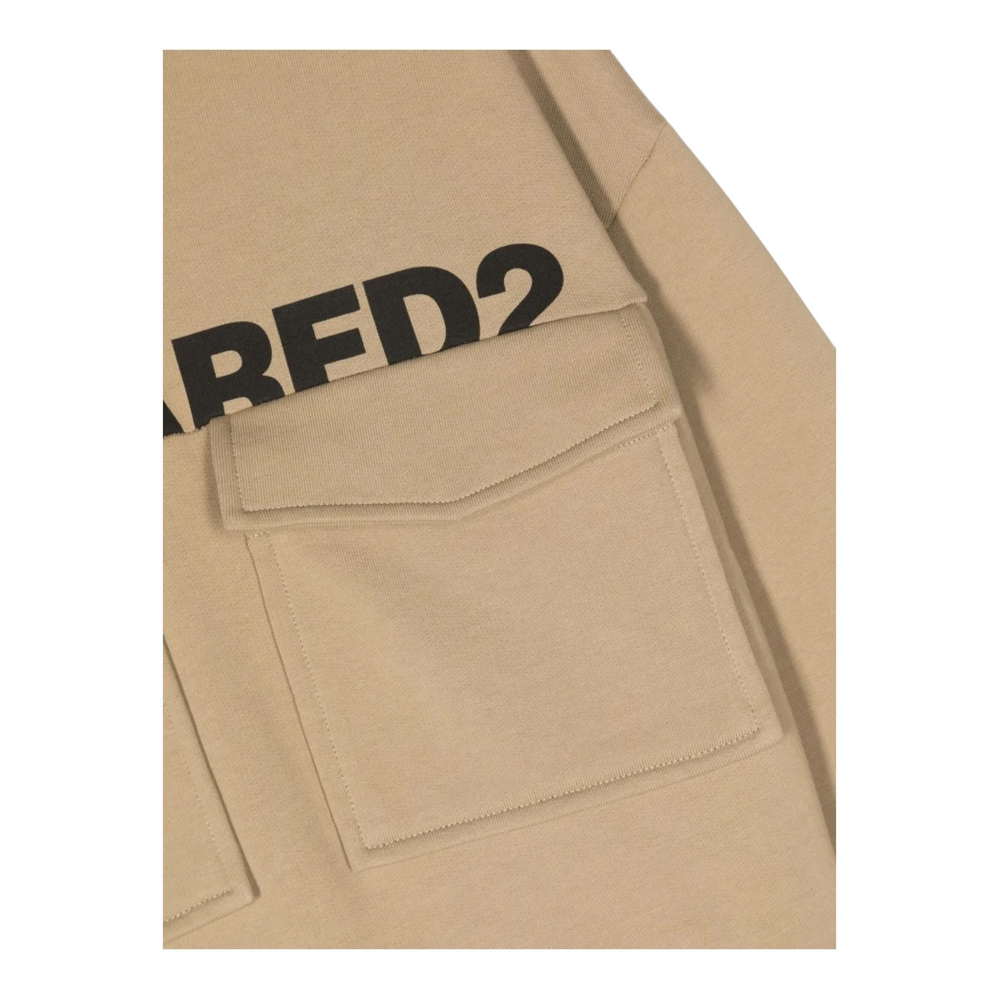 DSQUARED2 felpa chiusa con cappuccio tinta unita con stampa e tasche Beige per Bambino