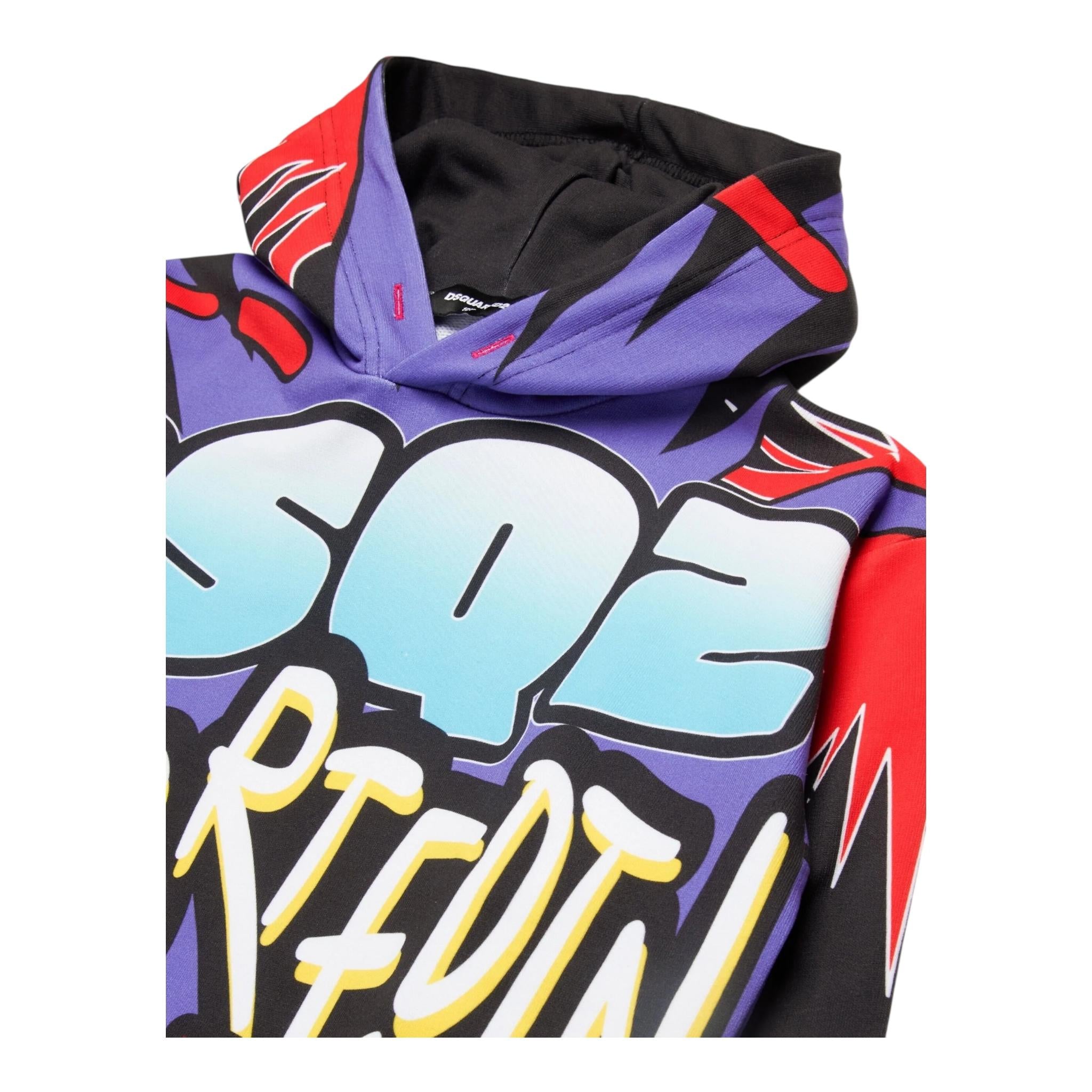 DSQUARED2 felpa tinta unita con cappuccio e stampa Nero per Bambino