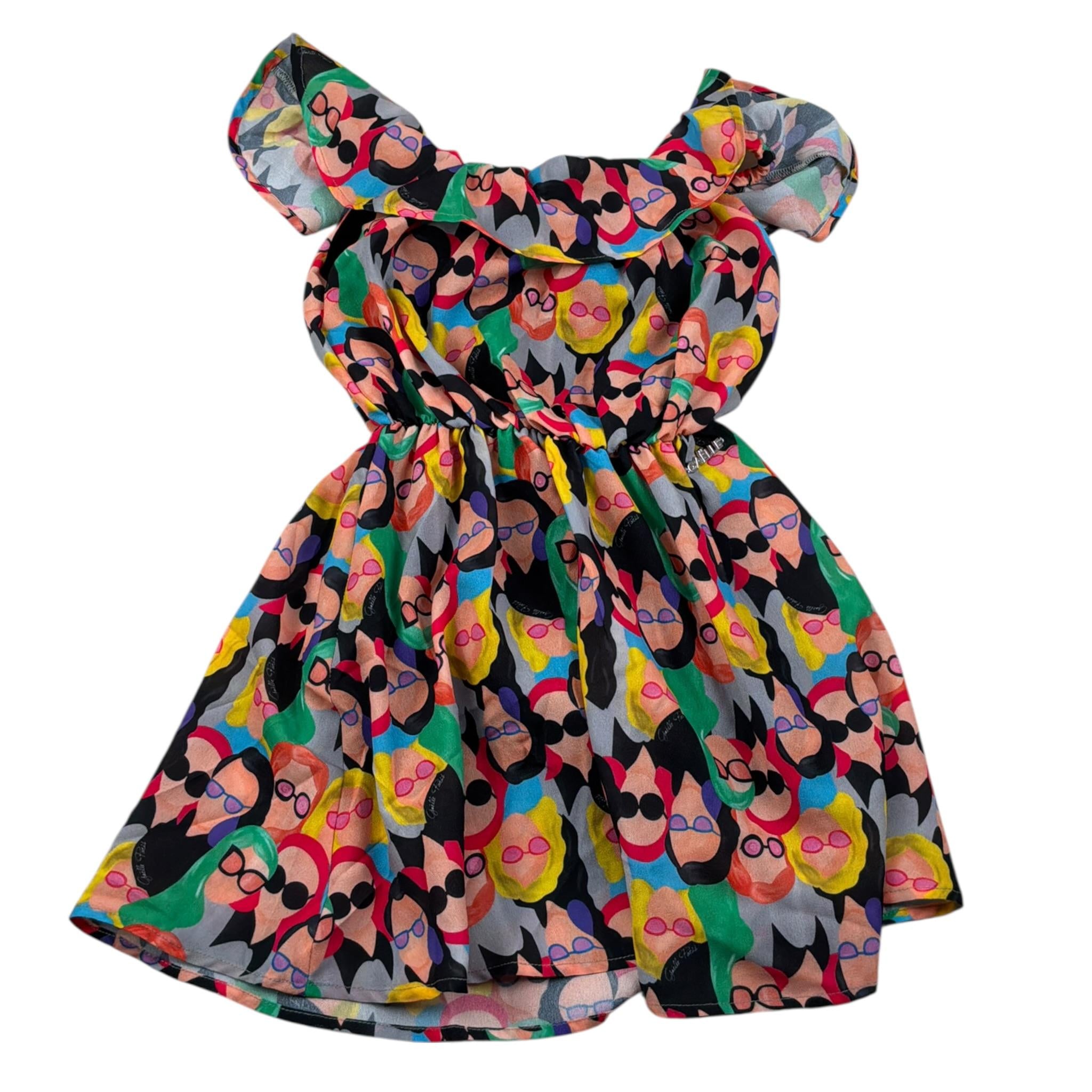 Gaelle Abito tinta unita con Fantasia Nero per Bambina