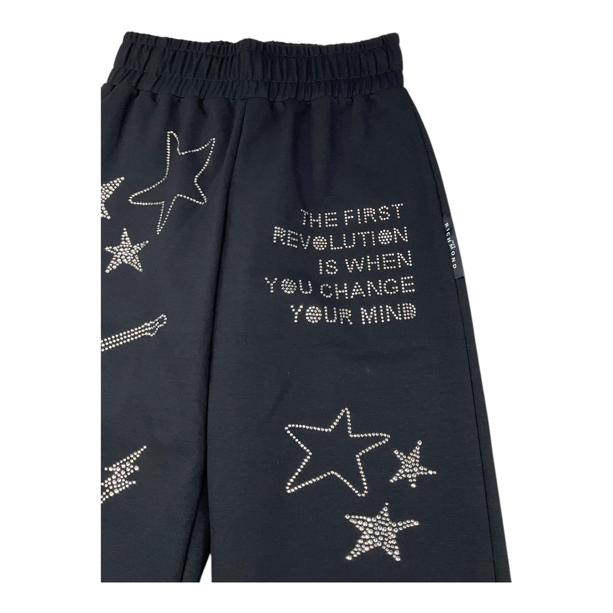 JOHN RICHMOND pantalone tinta unita con elastico in vita e brillantini Nero per Bambina