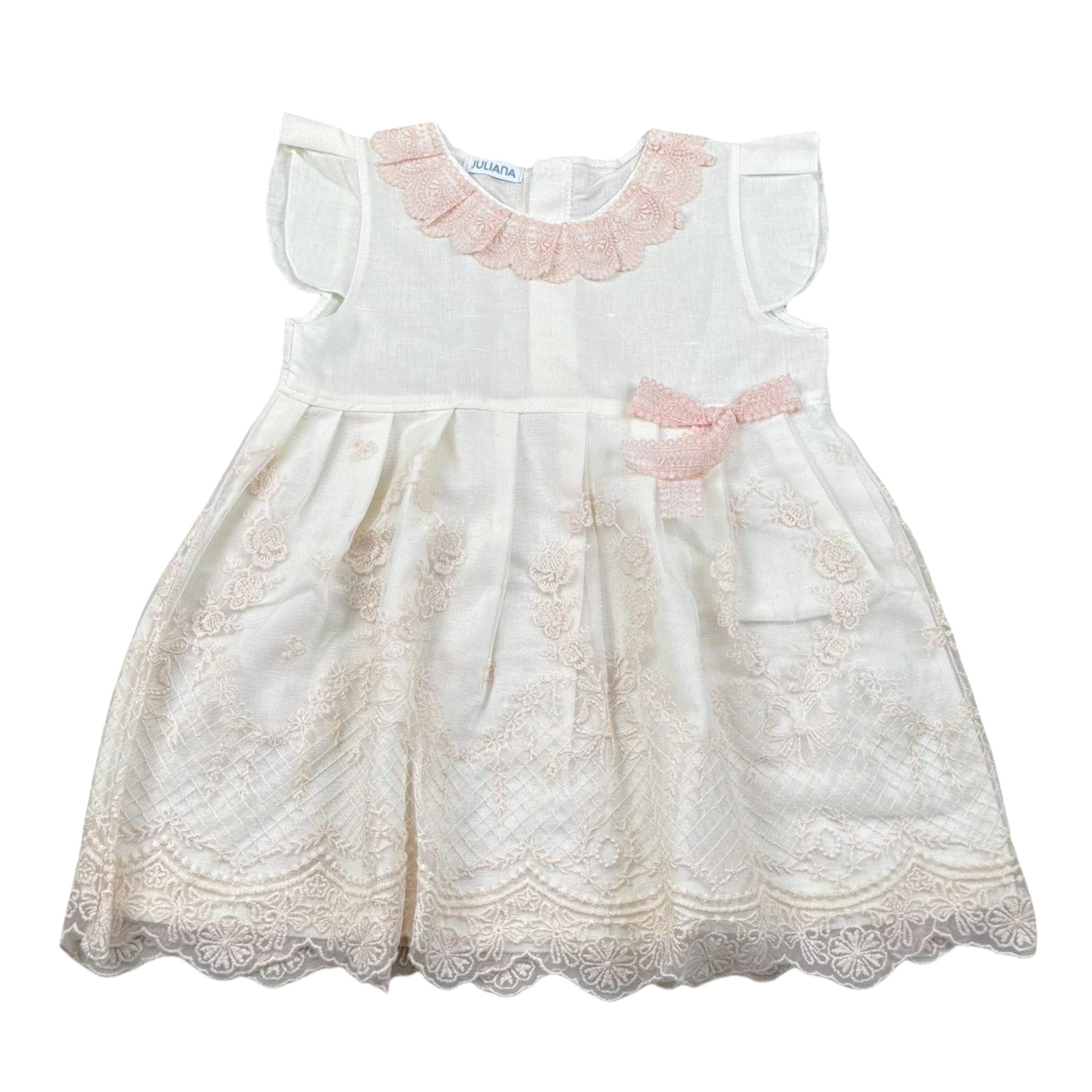 Juliana Abito tinta unita con Ricami firmata Juliana. Realizzata in 50% Cotone 50% Lino. Articolo per Neonata