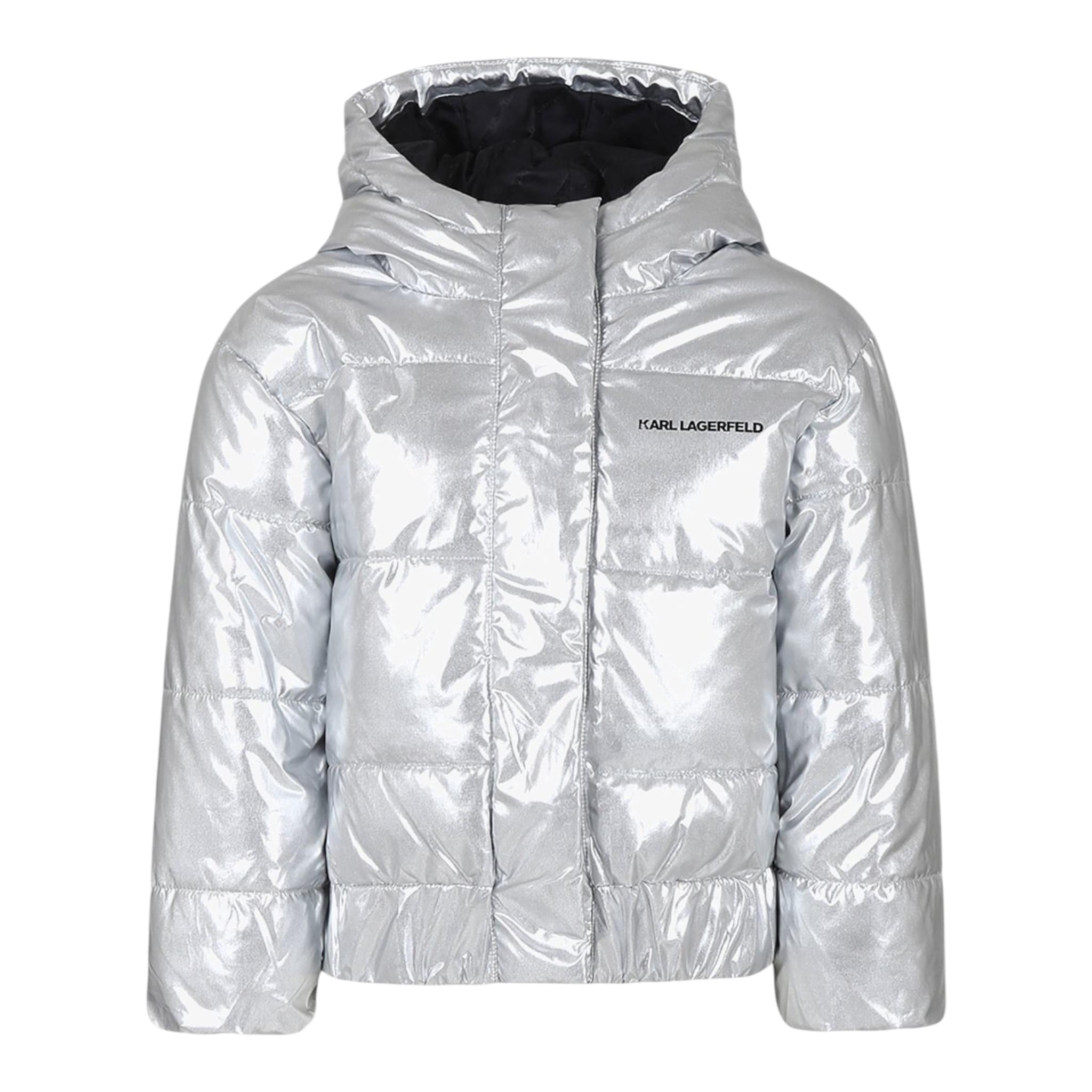 KARL LAGERFELD giubbino tinta unita con cappuccio Argento per Bambina