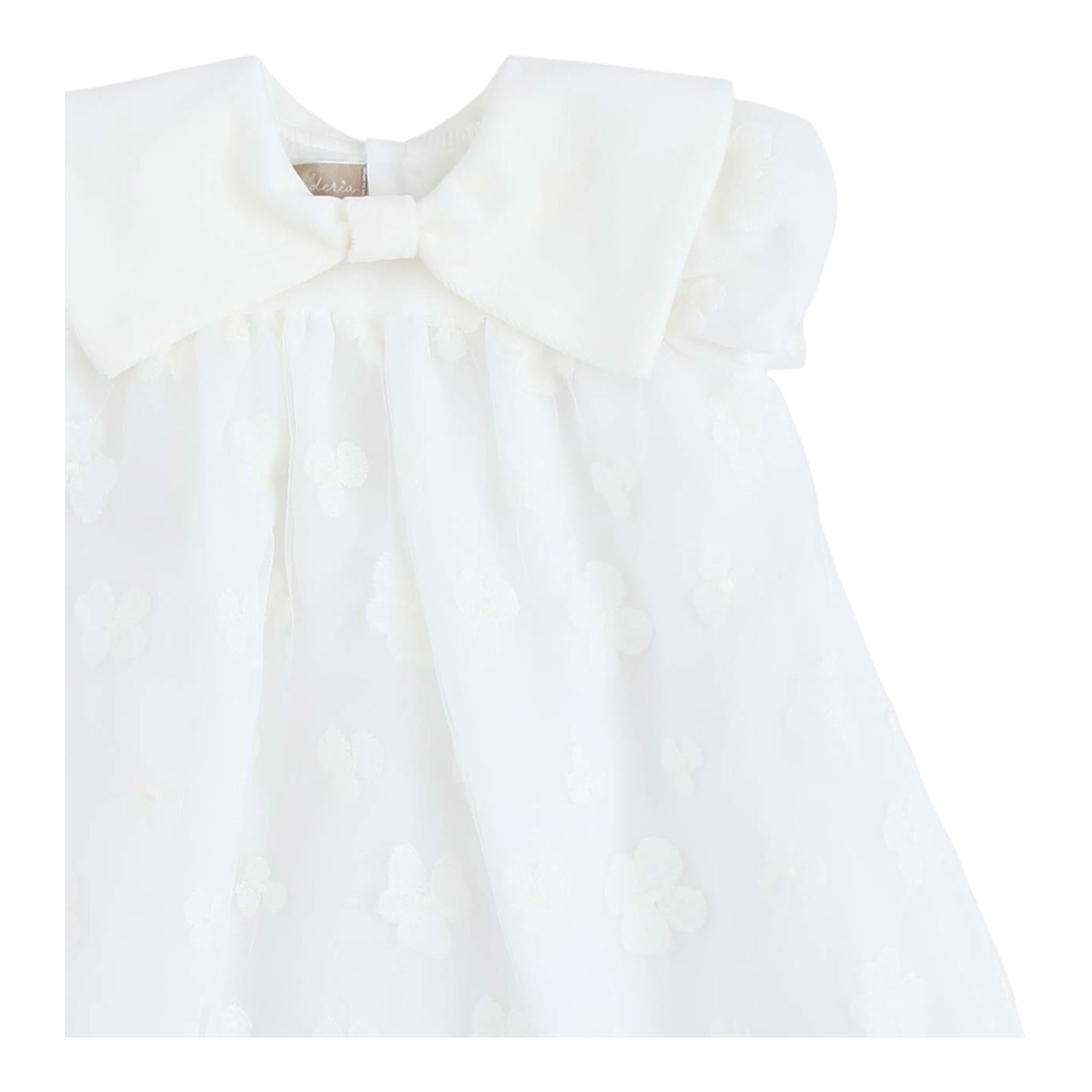 LA STUPENDERIA abito tinta unita mezza manica con ricami Bianco per Neonata