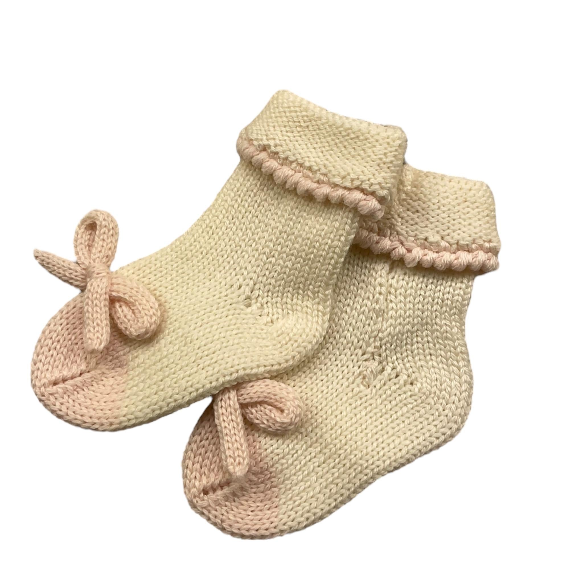 LA STUPENDERIA calzini tinta unita cn fiocco in contrasto Panna per Neonata