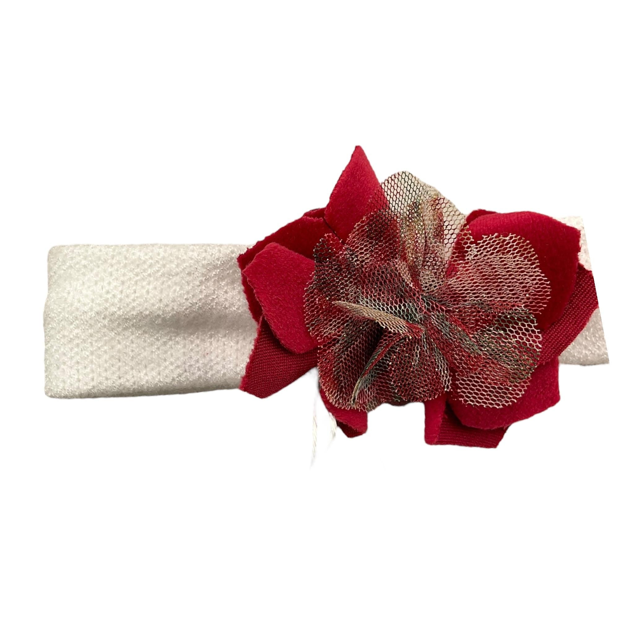 LALALU' fascia capelli tinta unita con fiore in contrasto Panna per Bambina