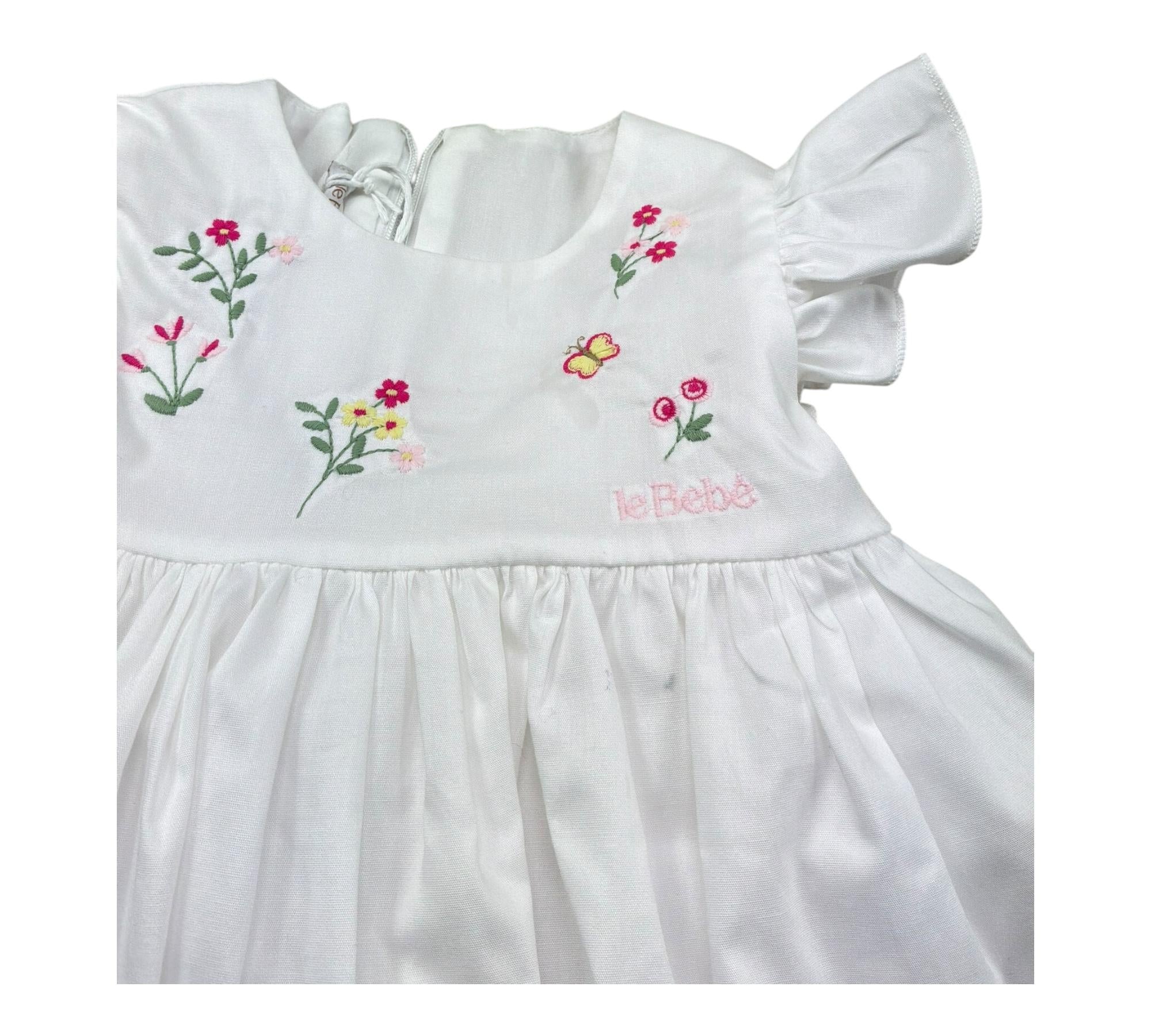 Le Bebe Abito Mezza Manica Tinta Unita con Ricami per Neonata