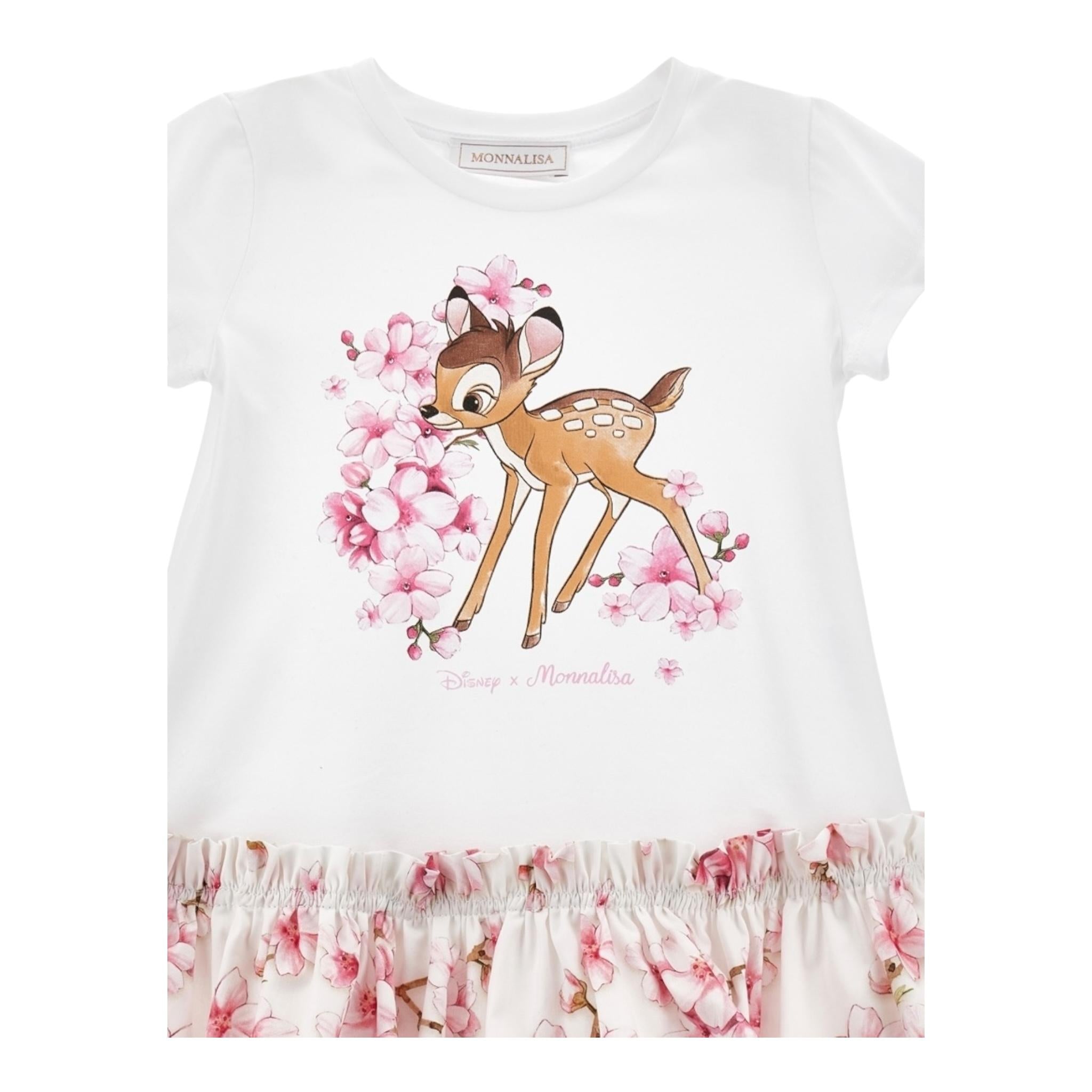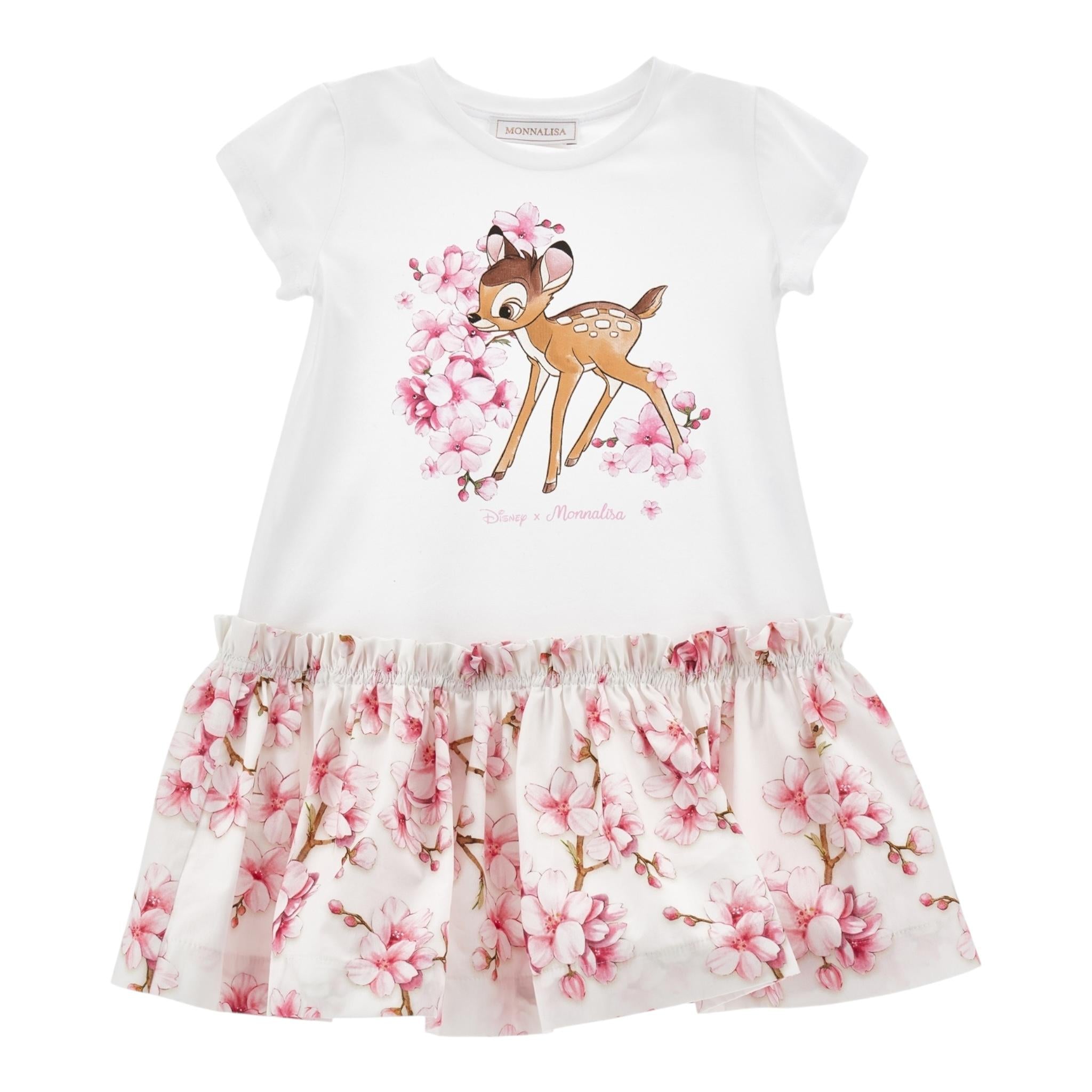 Monnalisa Abito Tinta Unita con Fantasia Fiori per Neonata