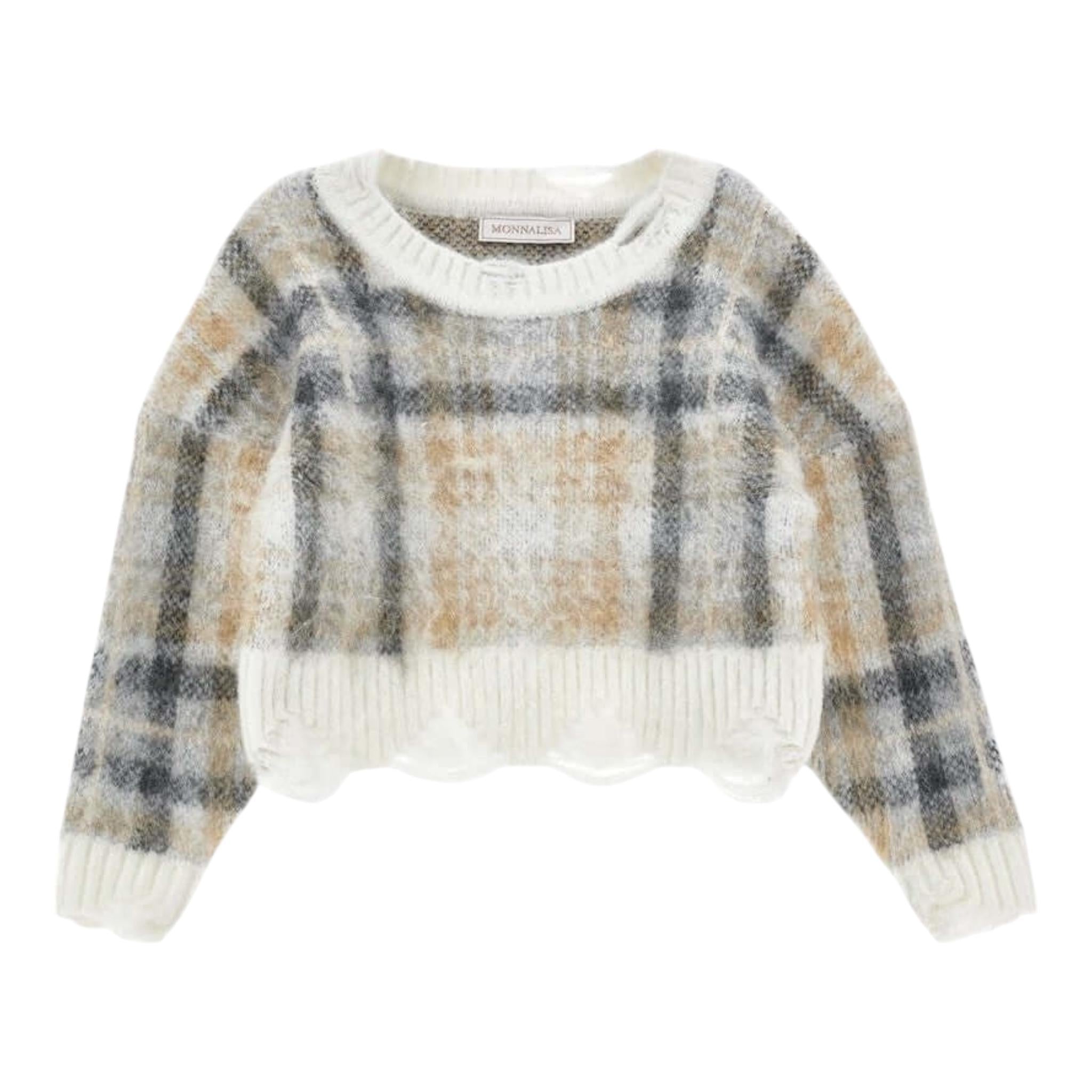 MONNALISA maglia tinta unita con fantasia a quadri Bianco per Bambina