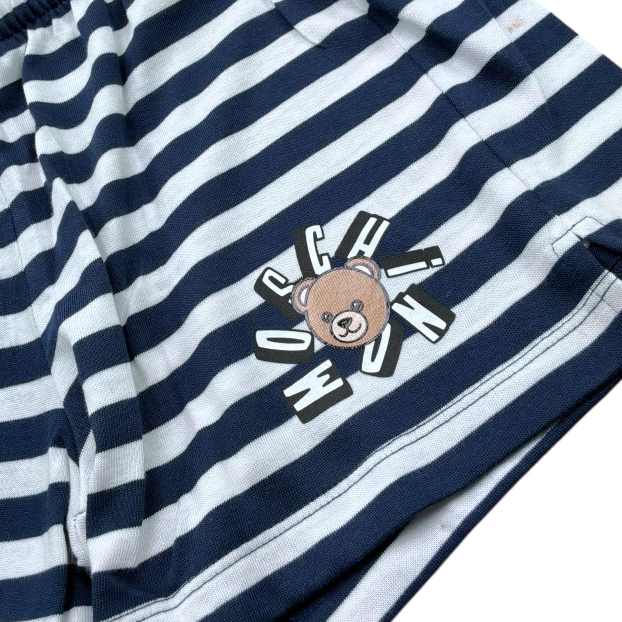 Moschino Completo 2 Pezzi Short-Top Bicolore con Fantasia A Righe per Bambina