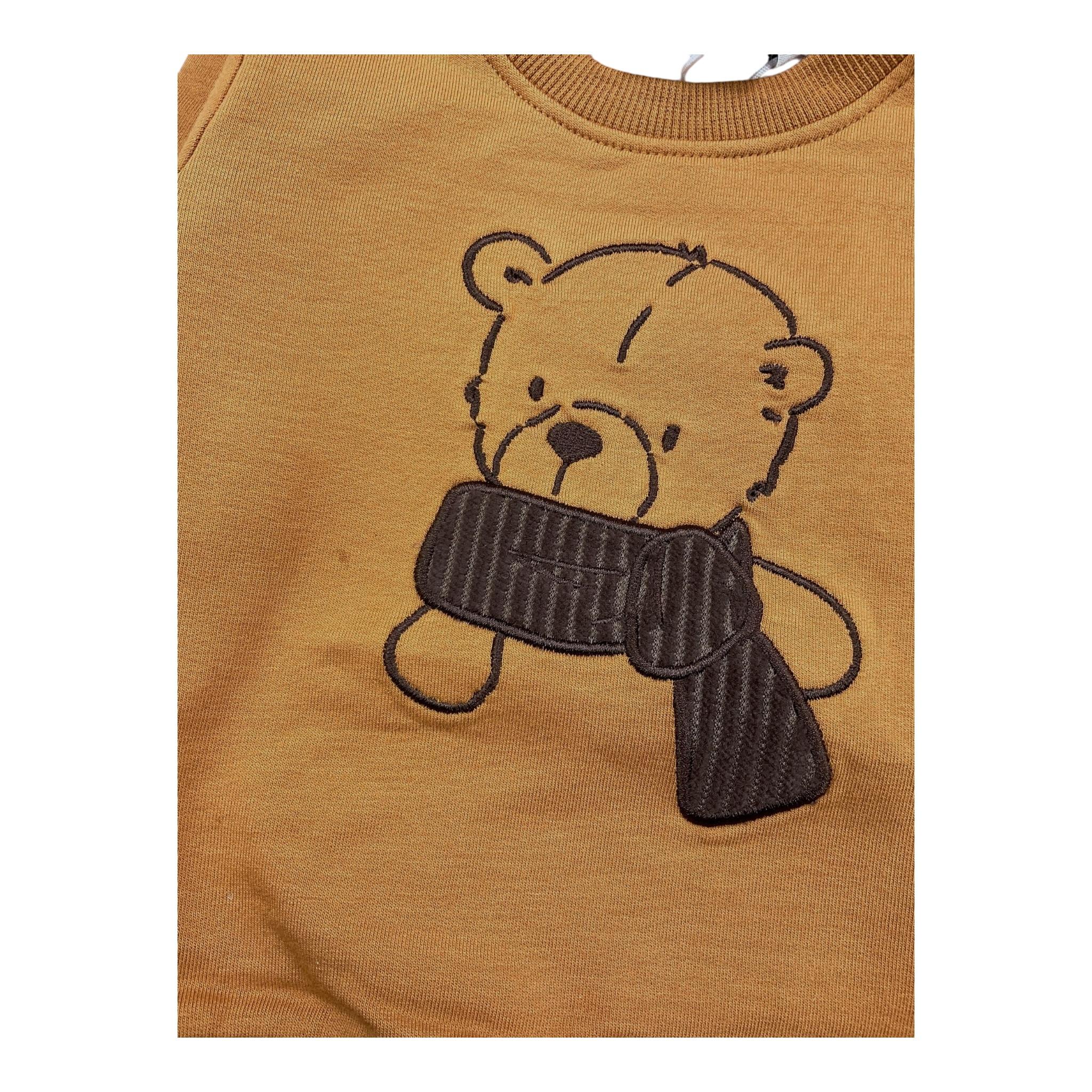 NAME.IT felpa chiusa girocollo tinta unita con ricami orso Senape per Neonato