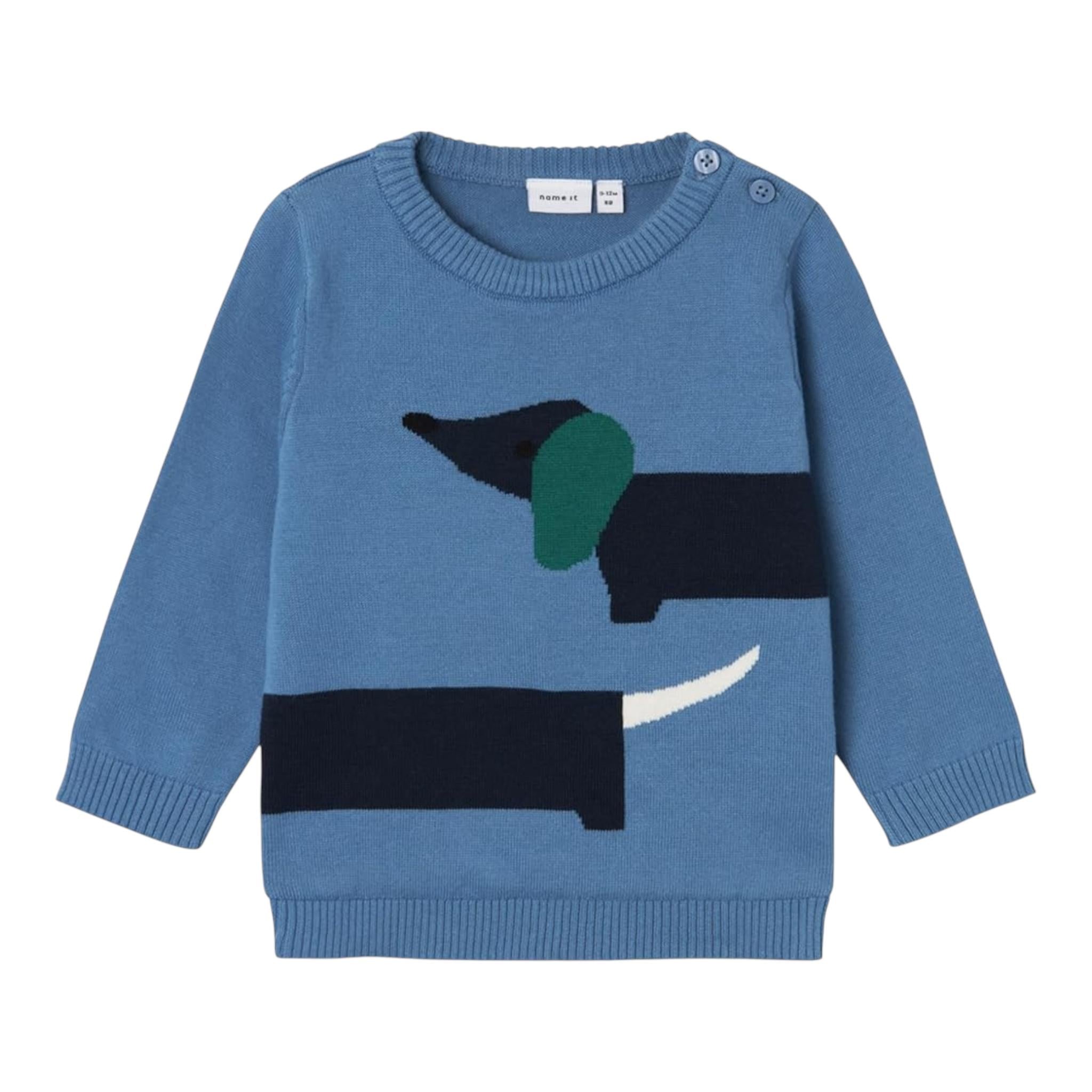 NAME.IT maglia girocollo tinta unita con bassotto Azzurro per Neonato