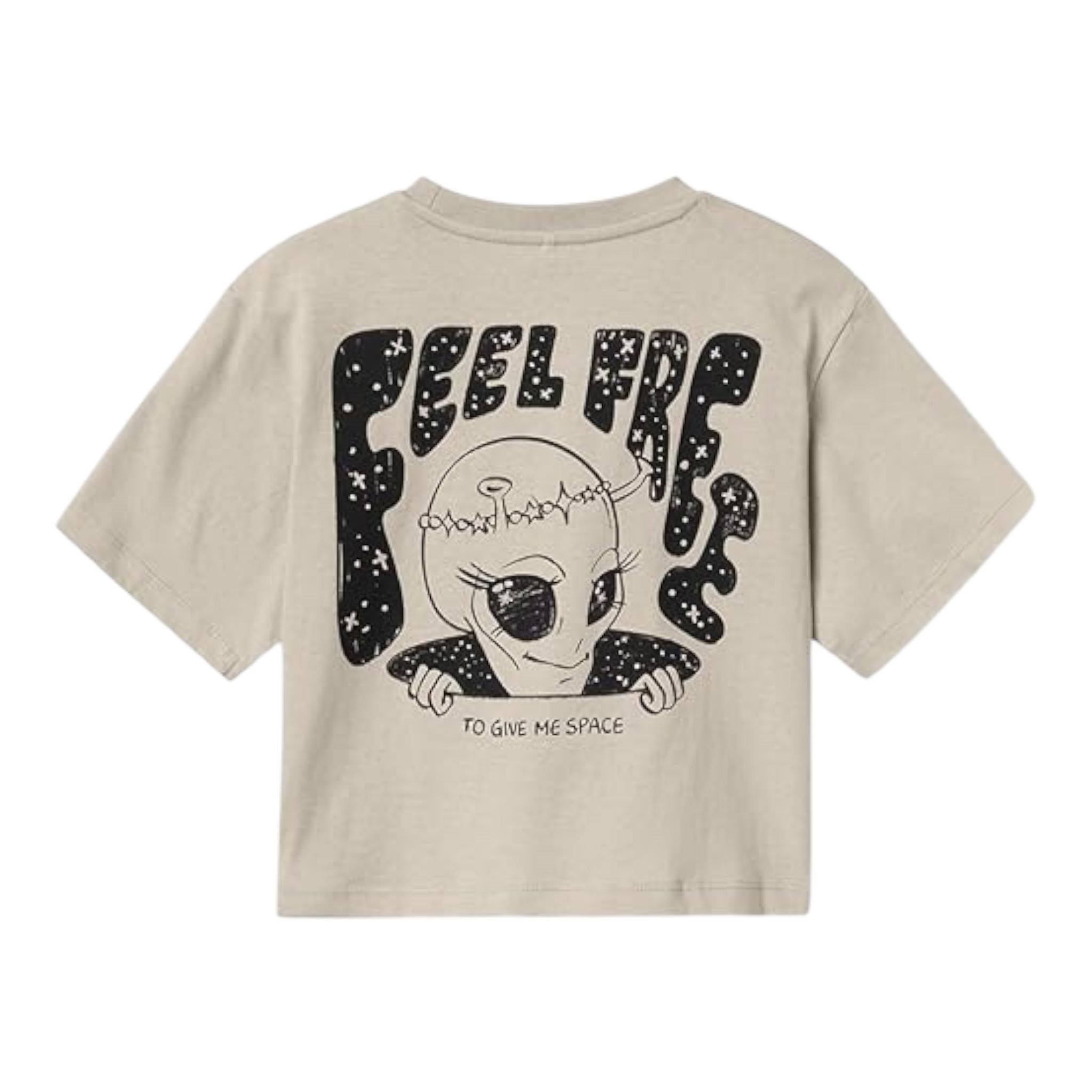 NAME IT t-shirt tinta unita girocollo con stampa Beige per Bambina