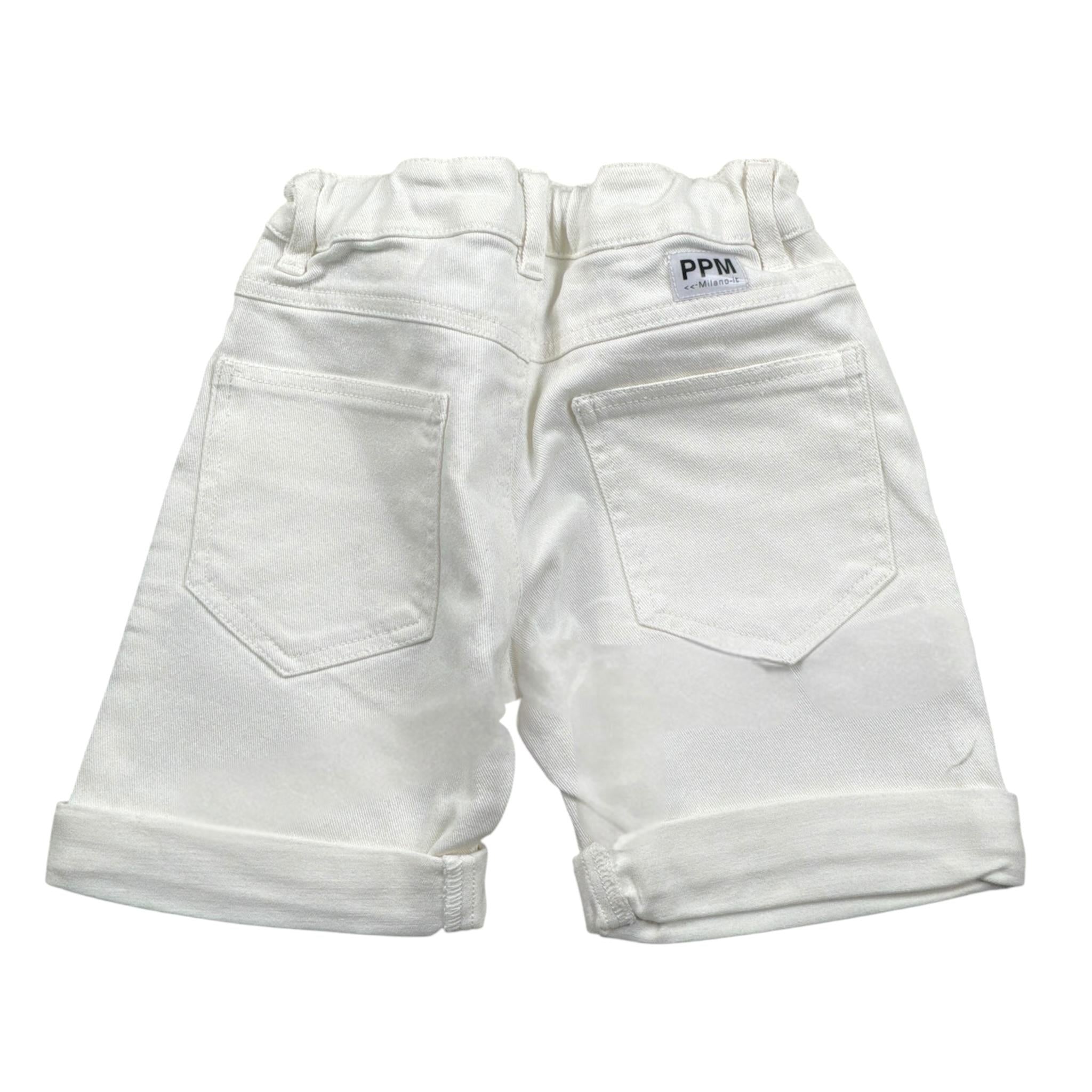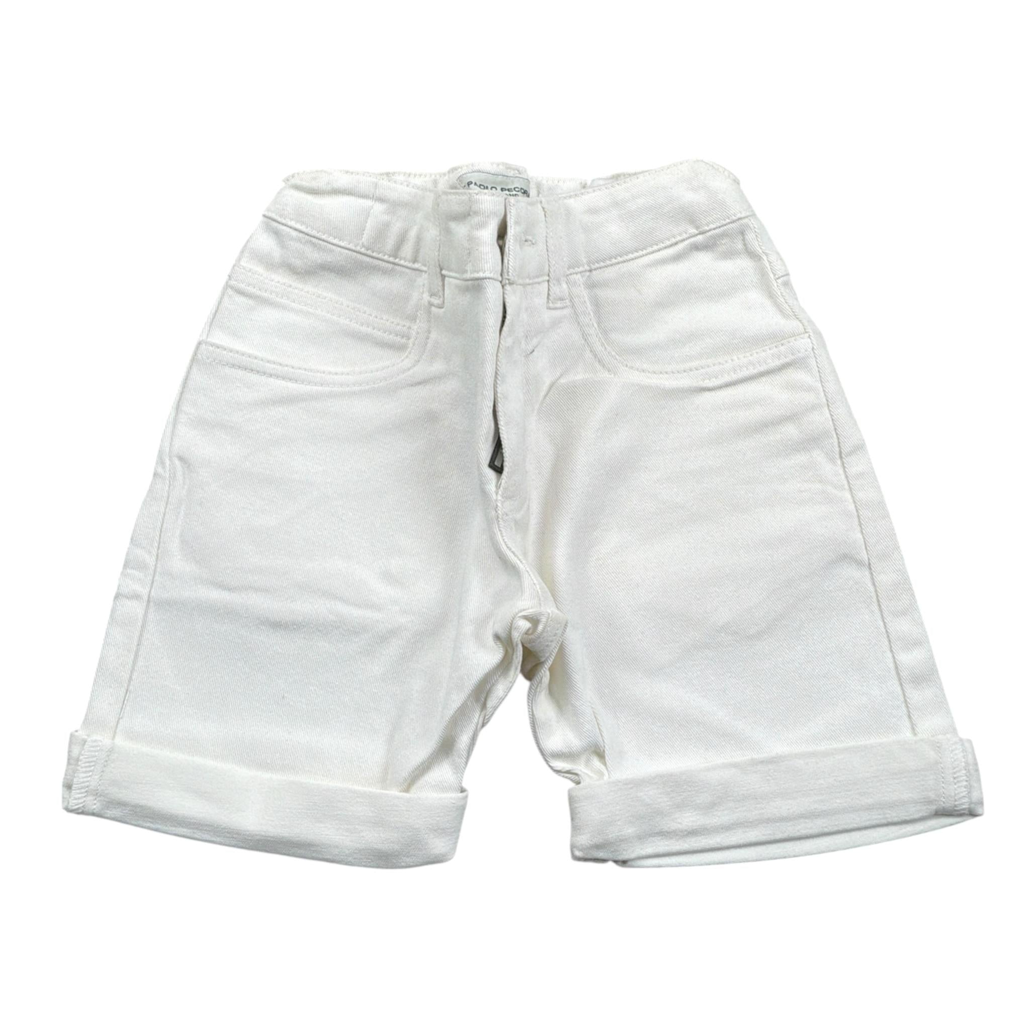 Paolo Pecora Bermuda tinta unita con Girovita Regolabile Bianco per Bambino