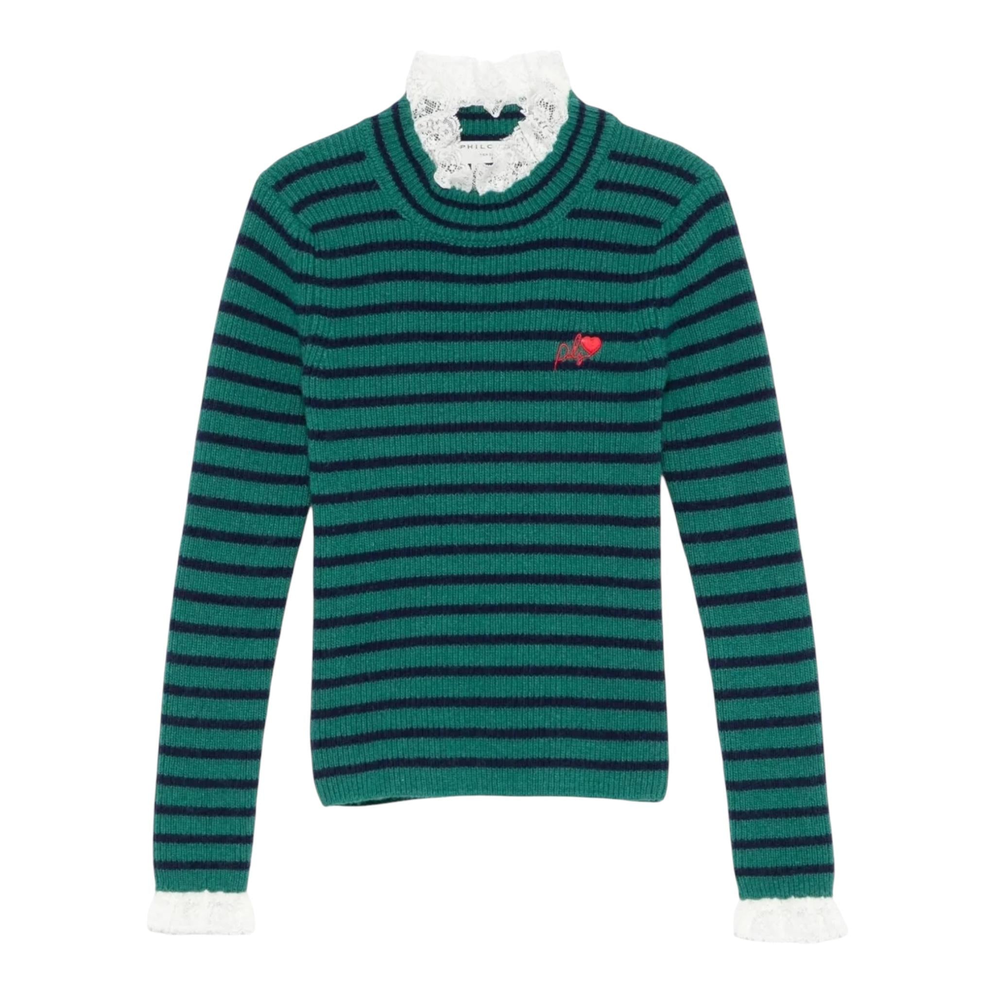 PHILOSOPHY maglioncino fantasia a righe con colletto ricamato Verde per Bambina