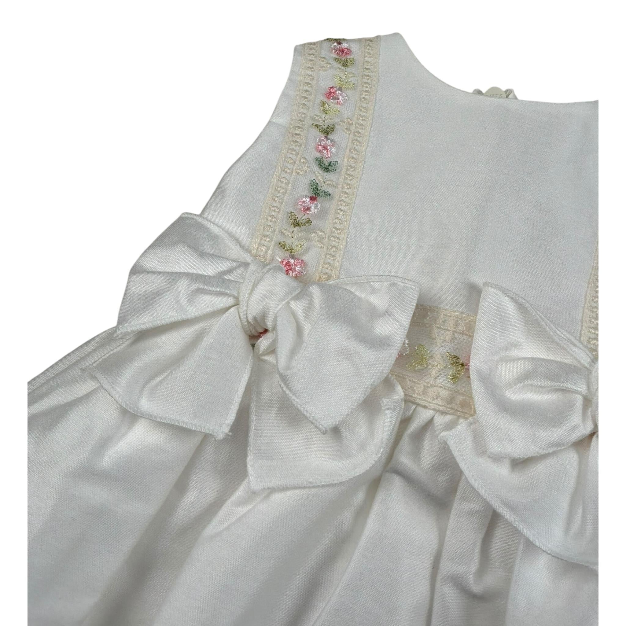 Pure Firenze Abito Giromanica Tinta Unita con Ricamii per Neonata