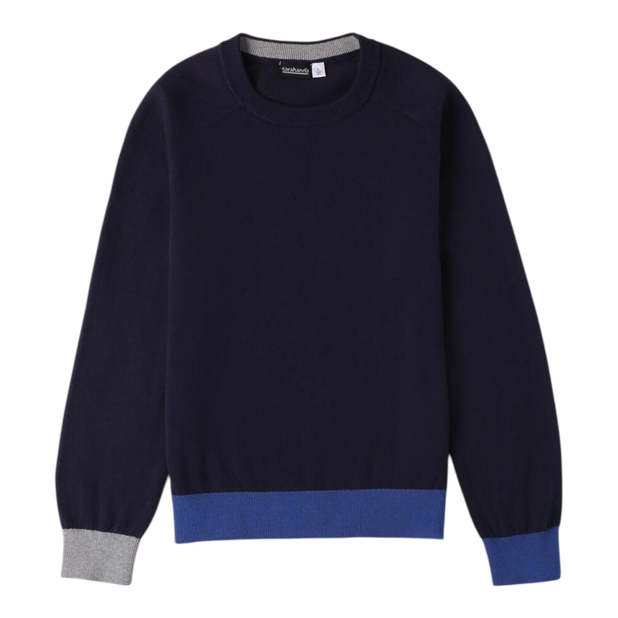SARABANDA maglia girocollo tinta unita con profili in contrasto Blu per Bambino